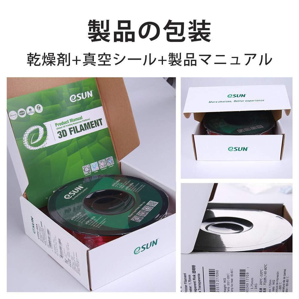 【真空包装】3Dプリンタフィラメントは、乾燥剤の入ったバッグによって真空包装されています。乾燥した状態を保ち、外部のチリやホコリから守り、ノズルの詰まりを防ぐことにより、滑らかな3Dモデルを生み出すことができます。