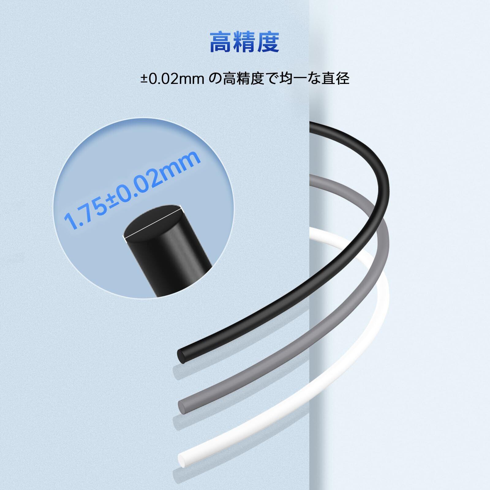 【高精度】ANYCUBIC PLA Plusフィラメントは低収縮性でより精確な造形ができます。直径1.75mm、僅かな0.02な寸法精度でより安定した出力ができると同時に、造形物に滑らかな表面を仕上がります。