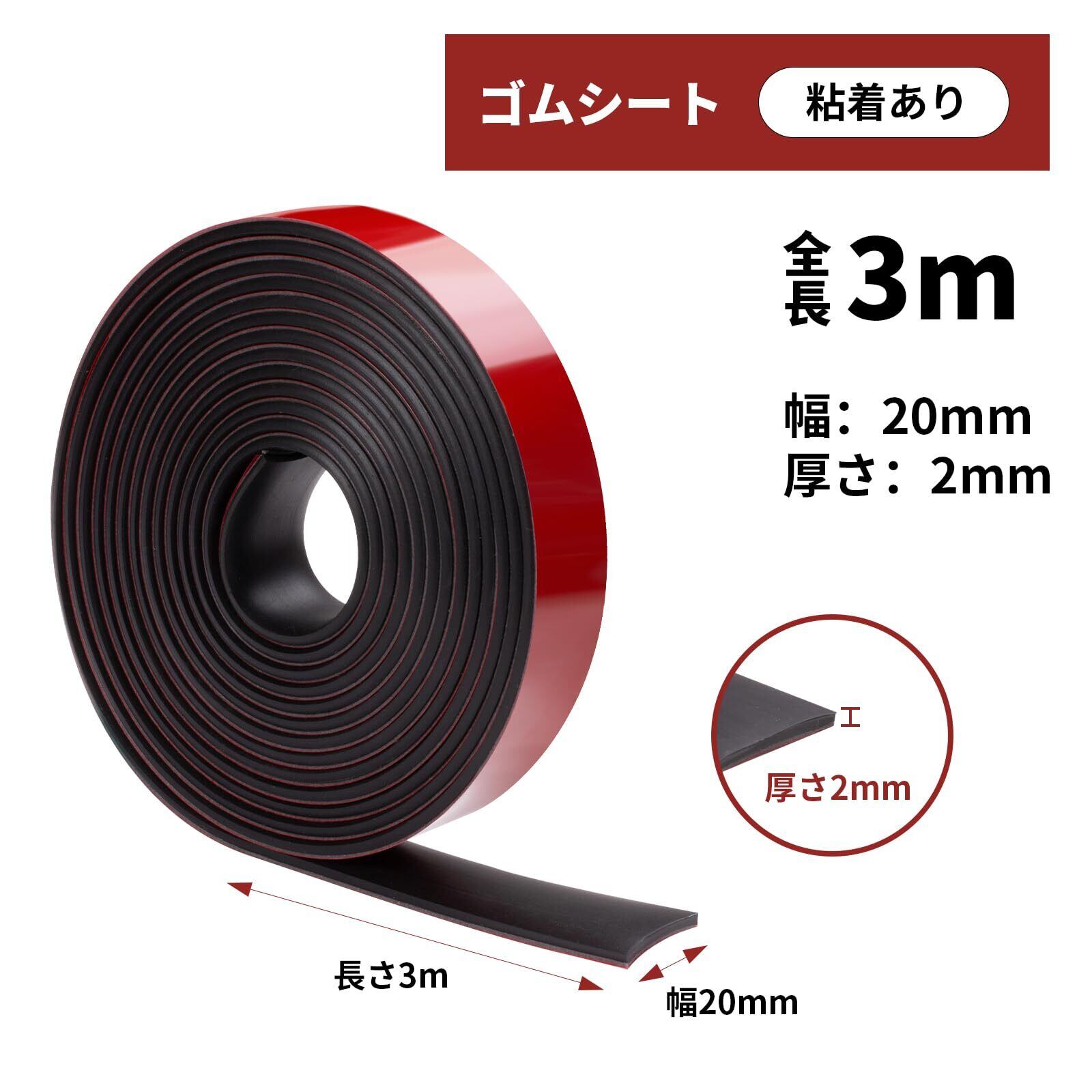 【新春セール】ゴムシート ゴムロール 振動吸収マット ゴム板 NBR 緩衝材 ゴム ゴムテープ 衝撃吸収材 DIY 防振マットゴムガスケット シーリングパッド 粘着付ゴムシート ゴムストリップ (厚さ2mmx幅20mmx長さ3m 粘着付き)