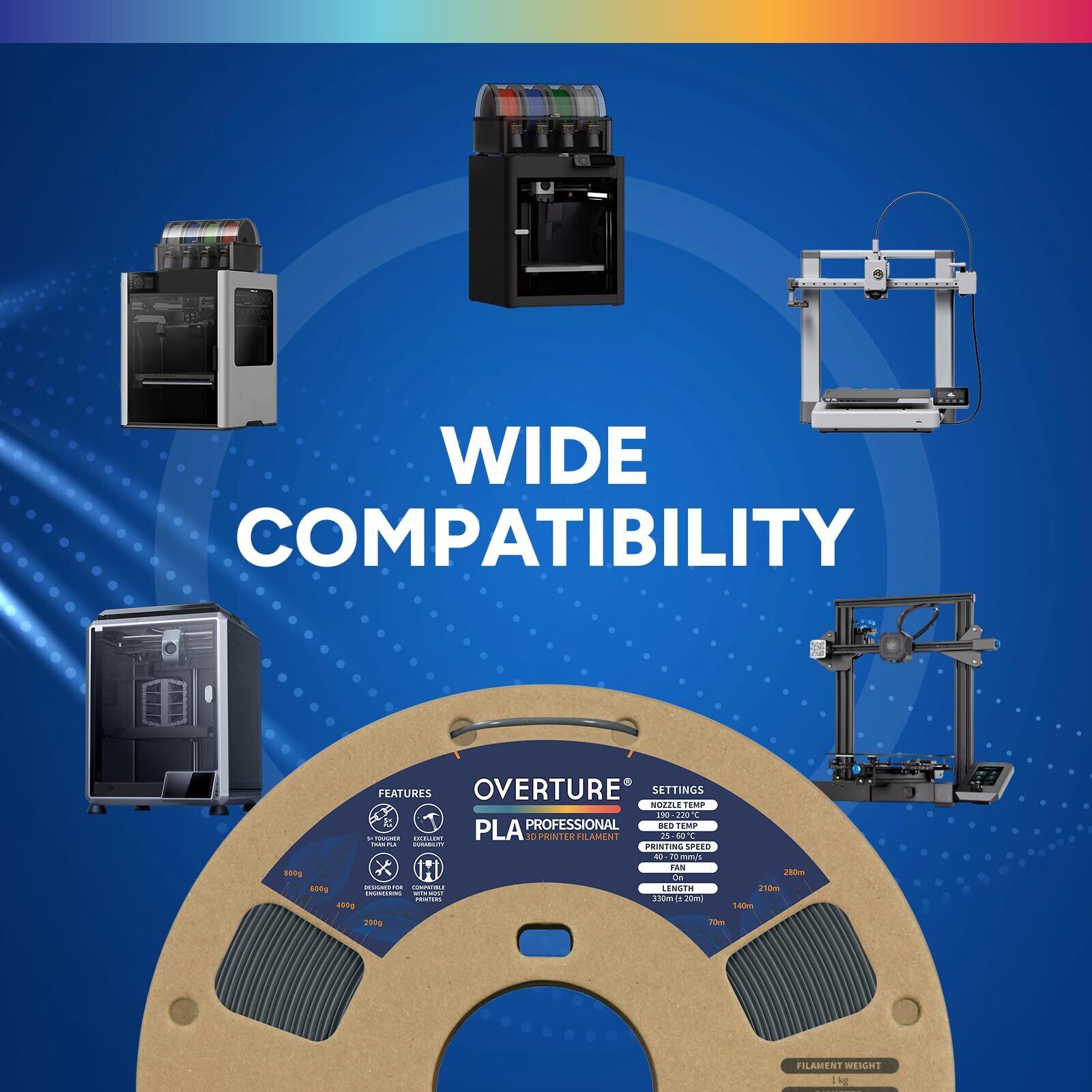 【広範な互換性とカラー選択】 Overtureフィラメントはほとんどの一般消費者および産業用3Dプリンターとシームレスに統合されます。 豊富な鮮やかな色の選択肢で、ユニークな作品の可能性を提供します。