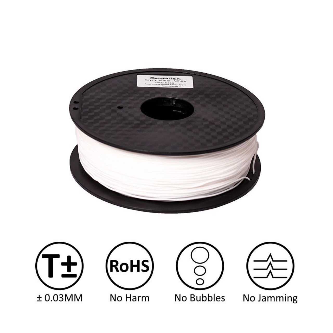 Pxmalion Flexible TPU 3Dプリンター用FLEX弾性樹脂フィラメント素材 フレキシブルマテリアル弾性曲がりやすい 柔軟性も耐久性も優れる 1.75mm径 正味量1KG(2.2LB) 精確度+/- 0.03mm だいぶの3Dプリンターが適用 (白/ホワイト)