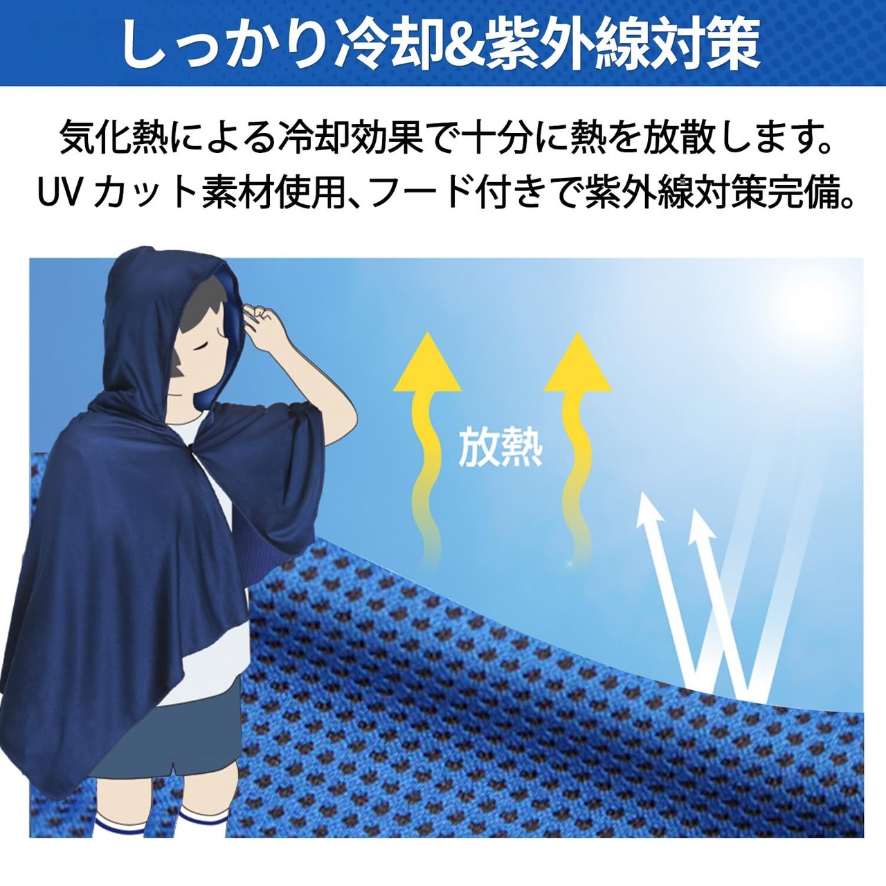 [SHICHANG] 肌温度-15℃の冷感ポンチョ 冷却 クールタオル 冷感タオル 冷感ポンチョ れいかんグッズ クールケープ スポーツタオル 冷感 ポンチョ サッカー 熱中症対策 暑さ対策 UV対策 スポーツ 日常生活 ネイビー | allstore5