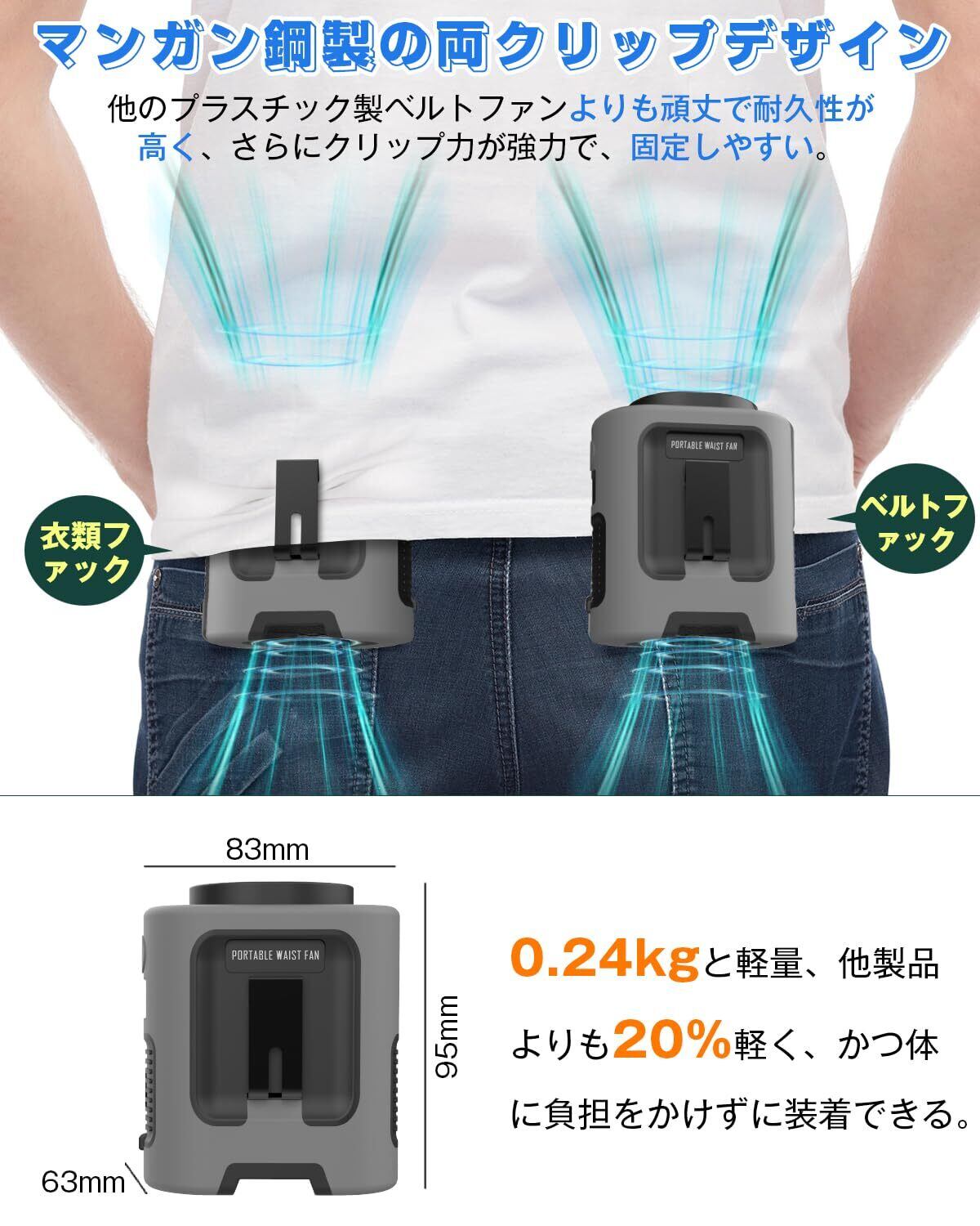 【アウトドア作業に最適】4WAYの携帯扇風機:腰掛け、手持ち、首掛け、卓上扇風機として使えます。マンガン鋼製の両クリップ設計で、頑丈で耐久性が高く、クリップ力が強力で、ベルトにしっかり固定することができます。両手をふさがずに、手を自由にしておきたい工事現場、農作業、配達作業、工場内、倉庫、スポーツ観戦、釣り、お祭り、アウトドア活動など様々なシーンで熱中症対策に最適です。