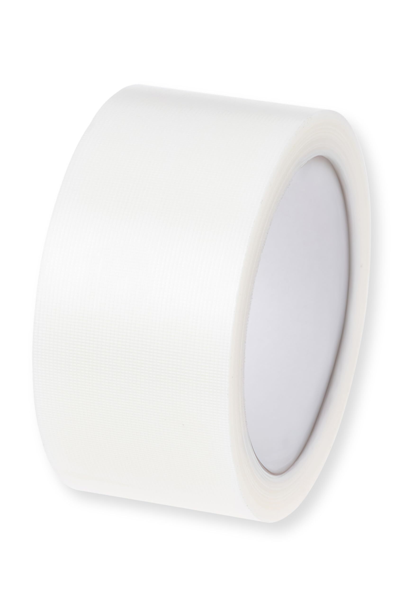 ●カラー: 白(半透明) ●サイズ: 幅50mm × 長さ25m 厚み: 0.14mm ●素材: PETクロス+PEラミネート+アクリル系粘着剤 ●粘着力: 中程度の万能タイプ。表面を傷つけずに簡単にはがせます