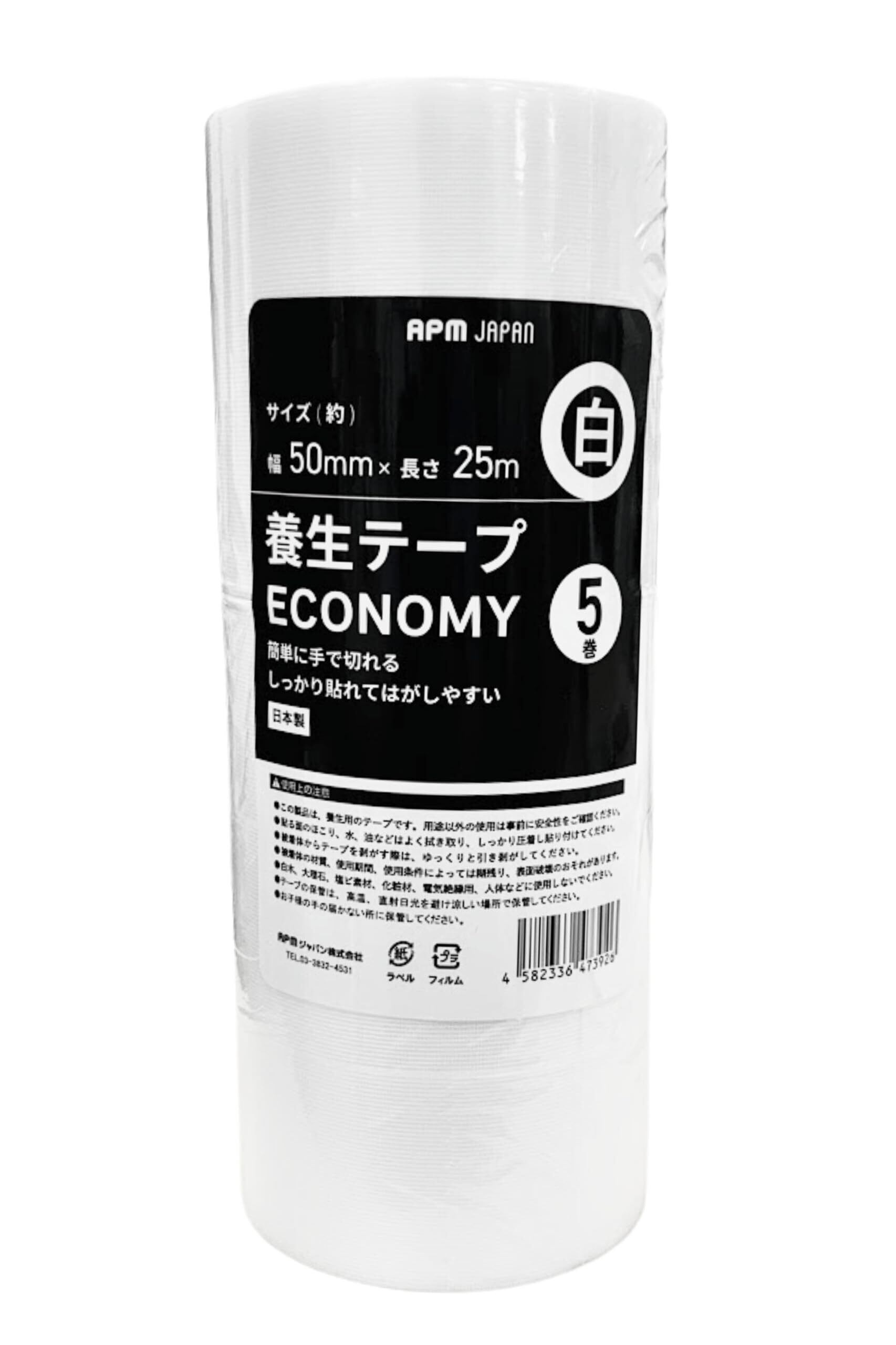 APMジャパン(APM Japan) 貼ってはがせるエコノミー養生テープ 万能タイプ 白(半透明) 50mm×25m 5個セット [養生・マスキングテープ]