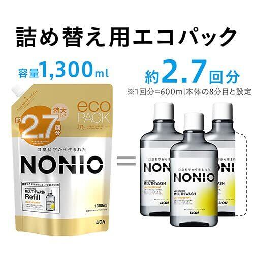 【2022最新】【詰め替え大容量】NONIO(ノニオ) マウスウォッシュ ライトハーブミント 低刺激ノンアルコールタイプ [医薬部外品] 1300ml 洗口液 パウチ 口臭原因菌を殺菌 | allstore5