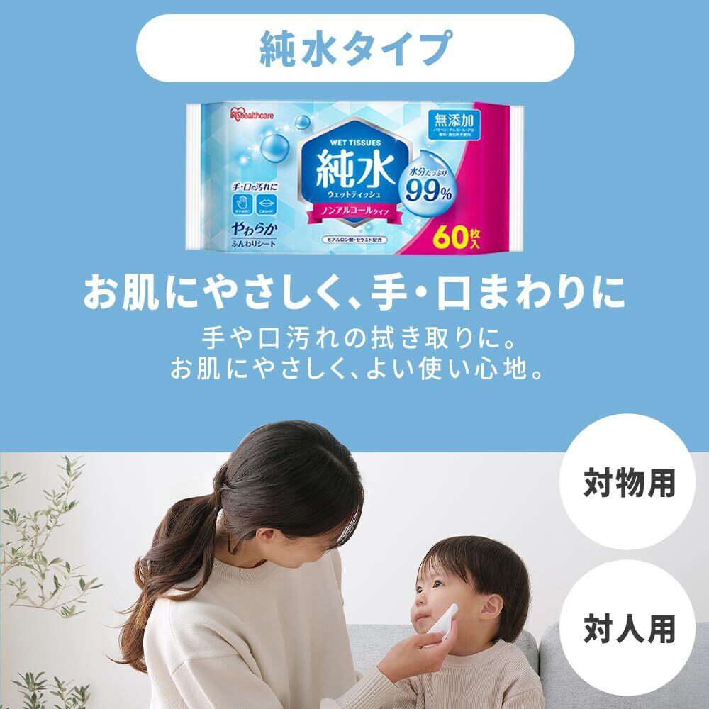 アイリスオーヤマ(IRIS OHYAMA) ウェットティッシュ ノンアルコール 除菌 480枚(60枚入×8個) コンパクト 掃除 持ち歩き 携帯 大容量 保湿 WTS-60N8P