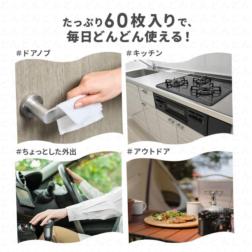 たっぷり60枚入りだから、毎日どんどん使える!持ち運びもできる便利なサイズ。