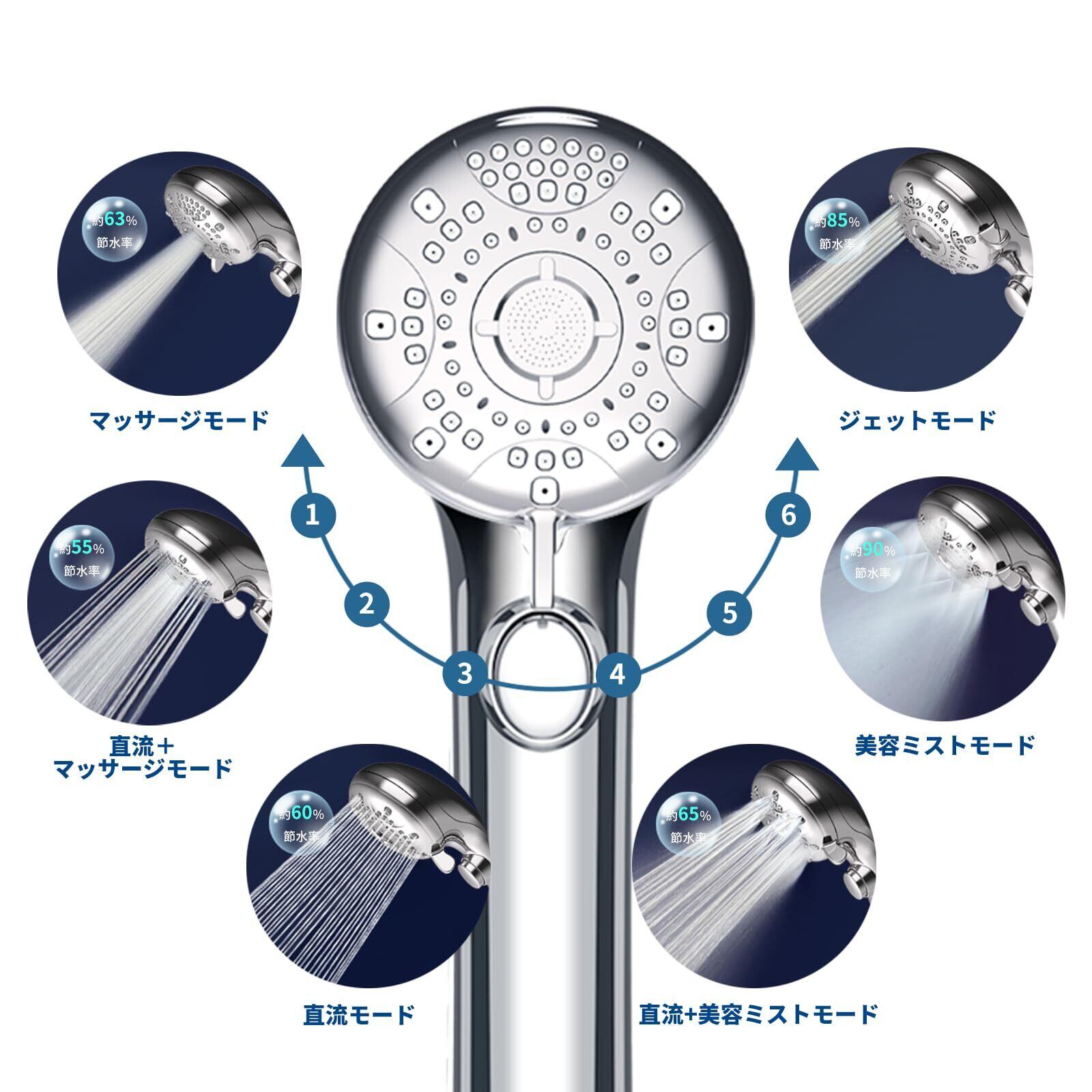 【6段階モード調節&手元止水】マッサージモード、直流+マッサージモード、直流モード、直流+美容ミストモード、美容ミストモード、ジェットモードなど6段階モードが調整可能、ニーズに応じてモードを選ぶことができます!これ一つで多くのニーズに応え、シャワーの利便性を向上させます。さらに止水機能が付き、ボタンを押すだけでワンキーストップが実現し、オン・オフの切り替えが自由なので非常に便利です。特に給湯器のスイッチが高すぎると、洗髪ときに見えない場合、また子供やペットのシャワーの場合には非常に便利です。