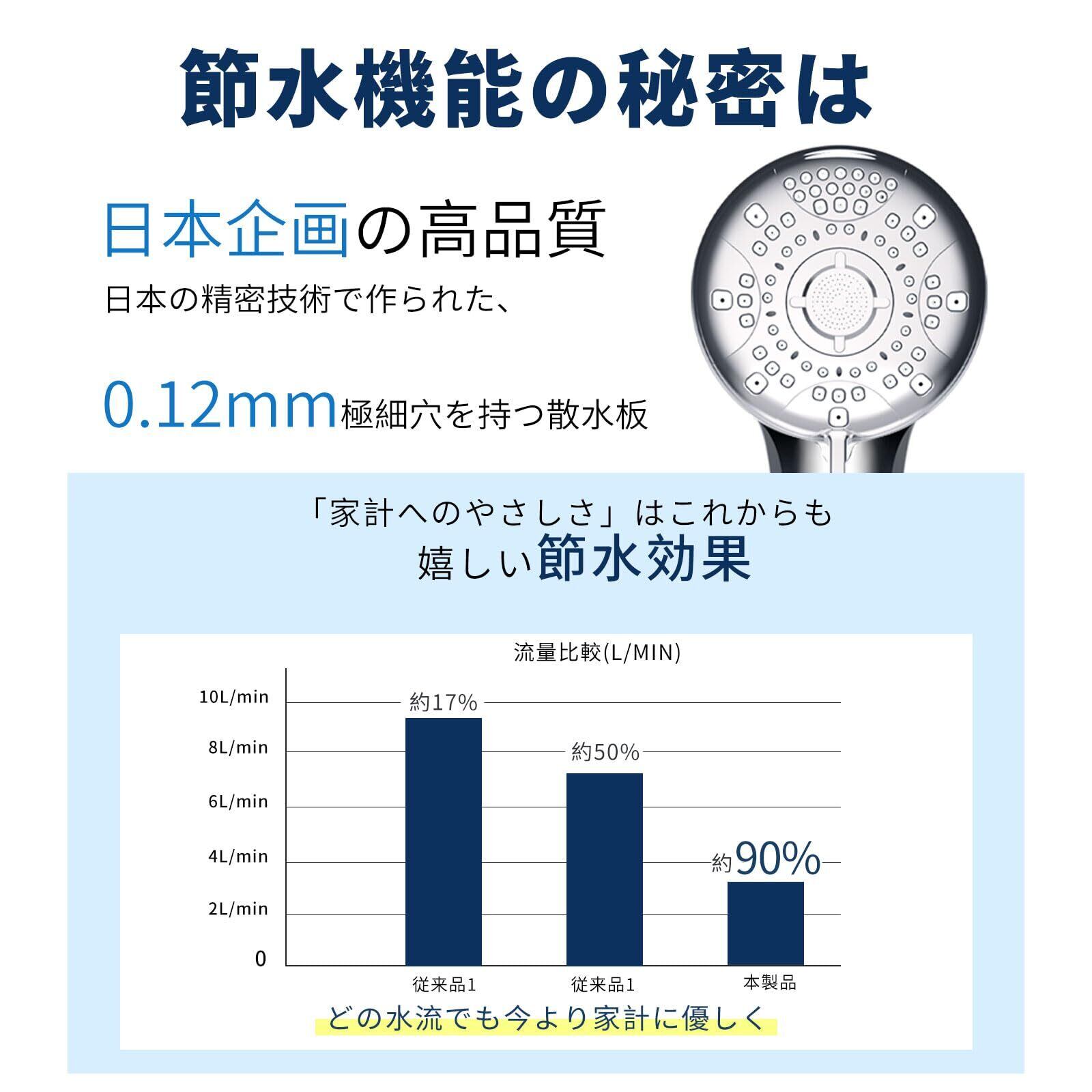 【ナノミスト・ナノバブル発生】最大14億9000万個高濃度のマイクロナノバブルという超微細の気泡が作れ、顔や肌の毛穴深くに浸透し、体の汚れ、落ちにくいメイクの汚れまた頭皮の油脂分を効果的に洗浄し、洗浄力がマクス!またシャワーヘッドはより微細な気泡を作り、その水分子が毛穴まで深くに浸透し、肌の水分を高くキープできるといった魅力があります。それで肌に優しく、肌の調子を整え美肌効果も促進します。敏感肌の方でもこのシャワーヘッドおすすめです。