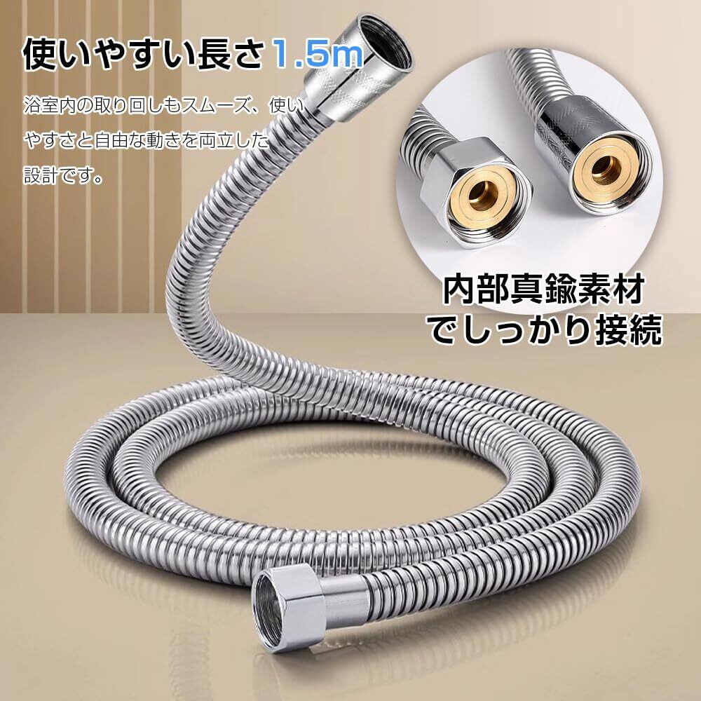 【2022最新】JetWave シャワーホース ステンレス製 1.5m 360度回転 ねじれ防止機能付き 日本規格G1/2対応 交換用 クロムメッキ仕上げ 取付簡単 クロムメッキ | allstore5