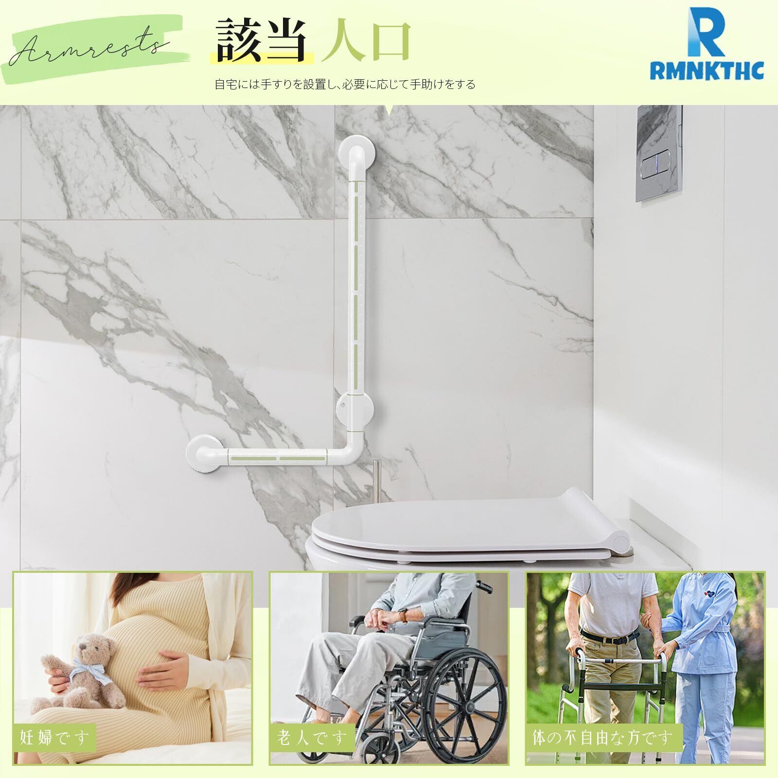 【特価商品】【大型発光+耐荷重300kg】RMNKTHC 浴室手すり L型 転倒防止 滑り止め 介護用 (60cm×40cm) ステンレス+抗菌ナイロン 夜光 簡単取り付け 老人/妊婦/術後向け