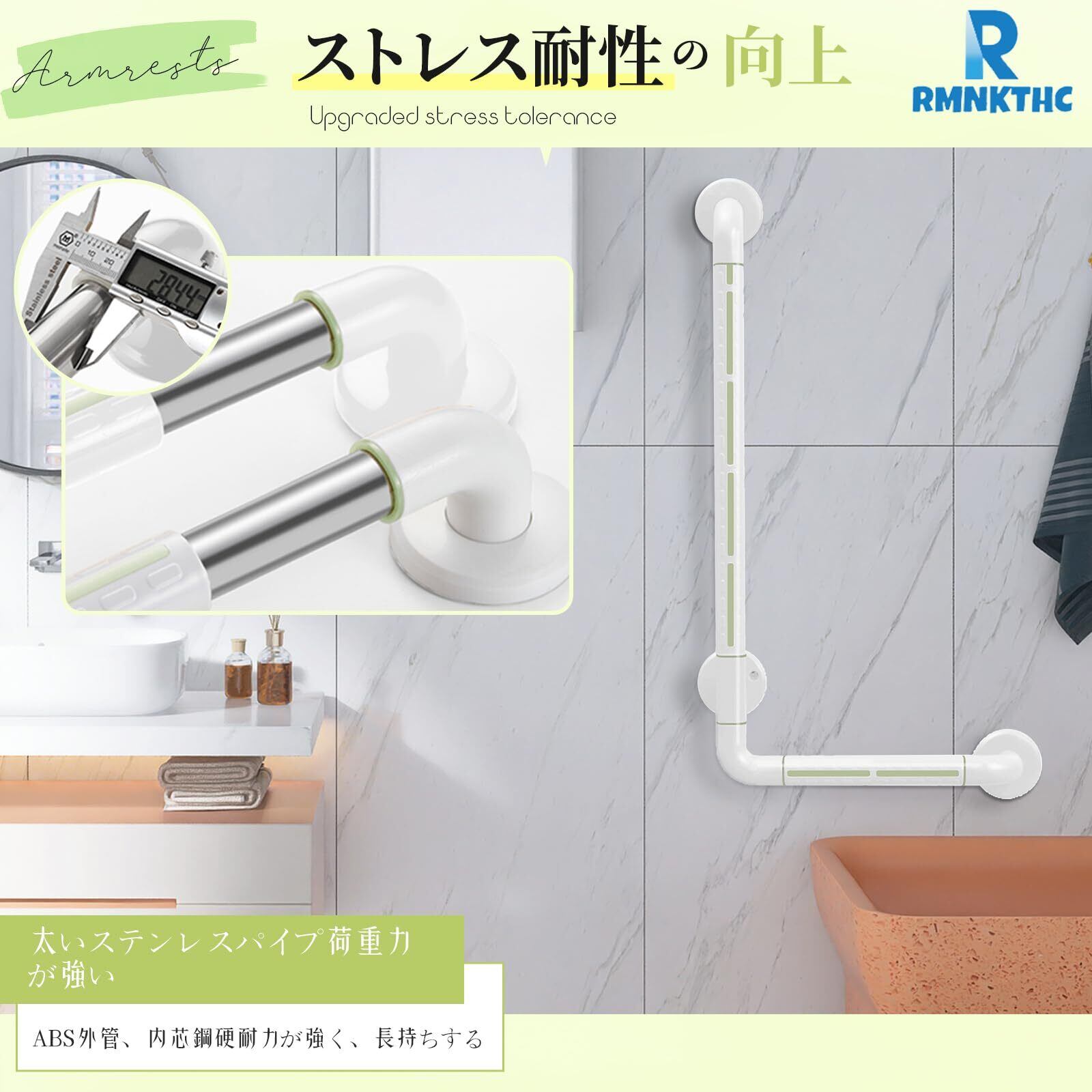 【大型発光+耐荷重300kg】RMNKTHC 浴室手すり L型 転倒防止 滑り止め 介護用 (60cm×40cm) ステンレス+抗菌ナイロン 夜光 簡単取り付け 老人/妊婦/術後向け