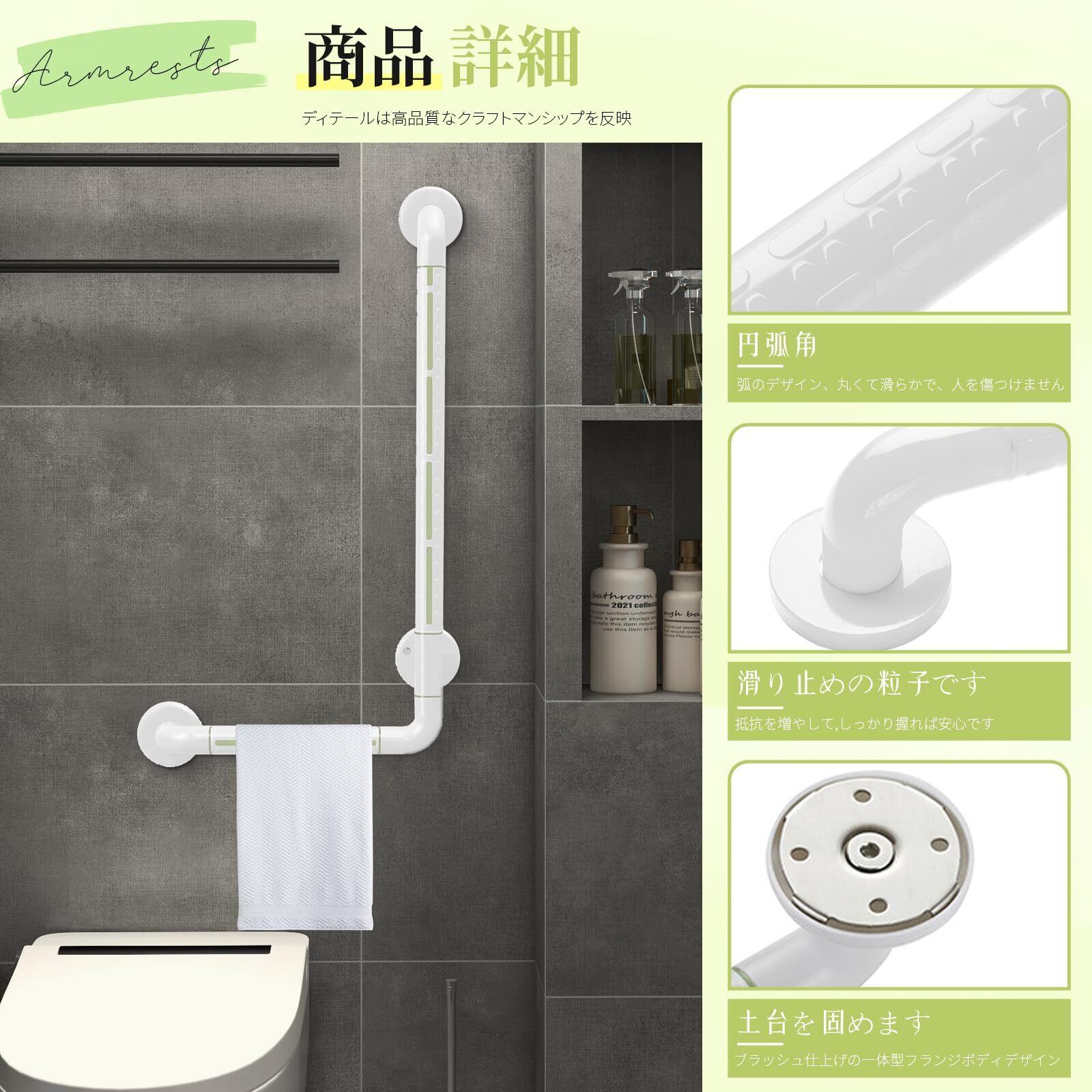 【多施設設置実績】:一般家庭はもちろん、病院廊下・老人ホーム階段・公共トイレなど15種の環境で耐久性を検証。L型角度が浴槽跨ぎ動作を物理的にアシスト。介護保険対象商品と同等の安全基準。