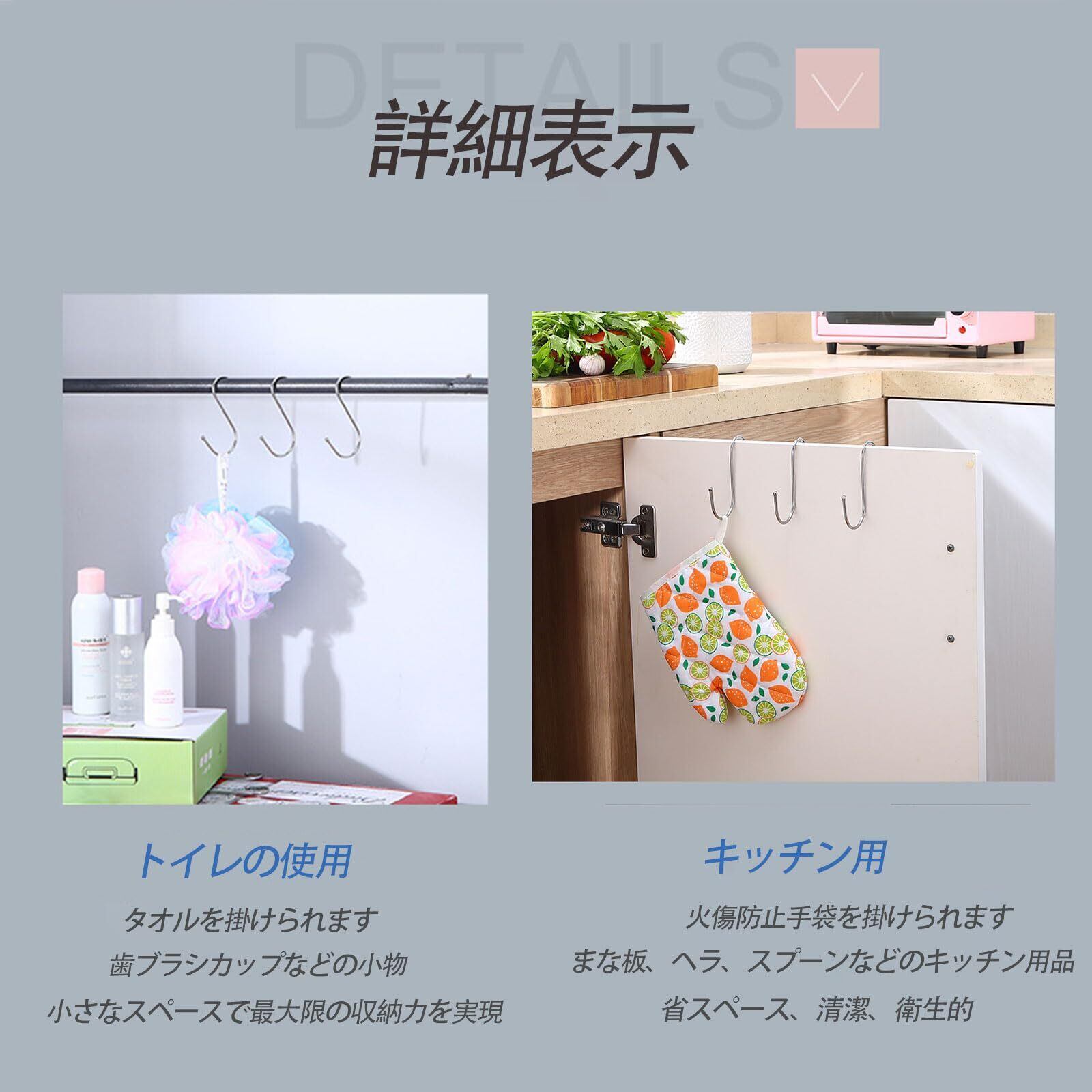 これらのS字フックがあれば、プロのシェフのようにキッチン用品、フライパン、鍋、調理器具、スプーンなどを簡単に整理できます。手の届く範囲にすべてを収納できるので、散らかったものに気を取られて貴重な時間を無駄にすることはありません。