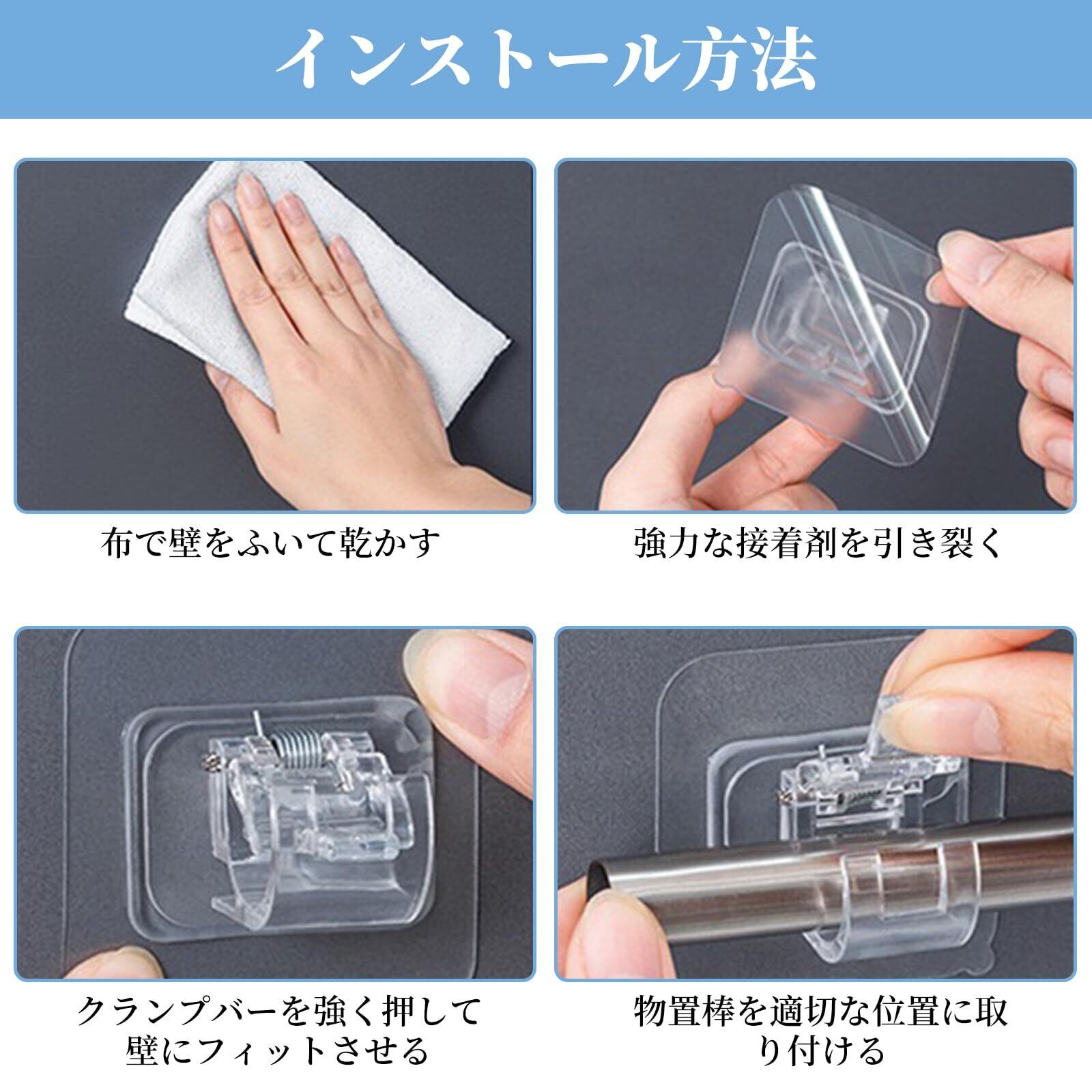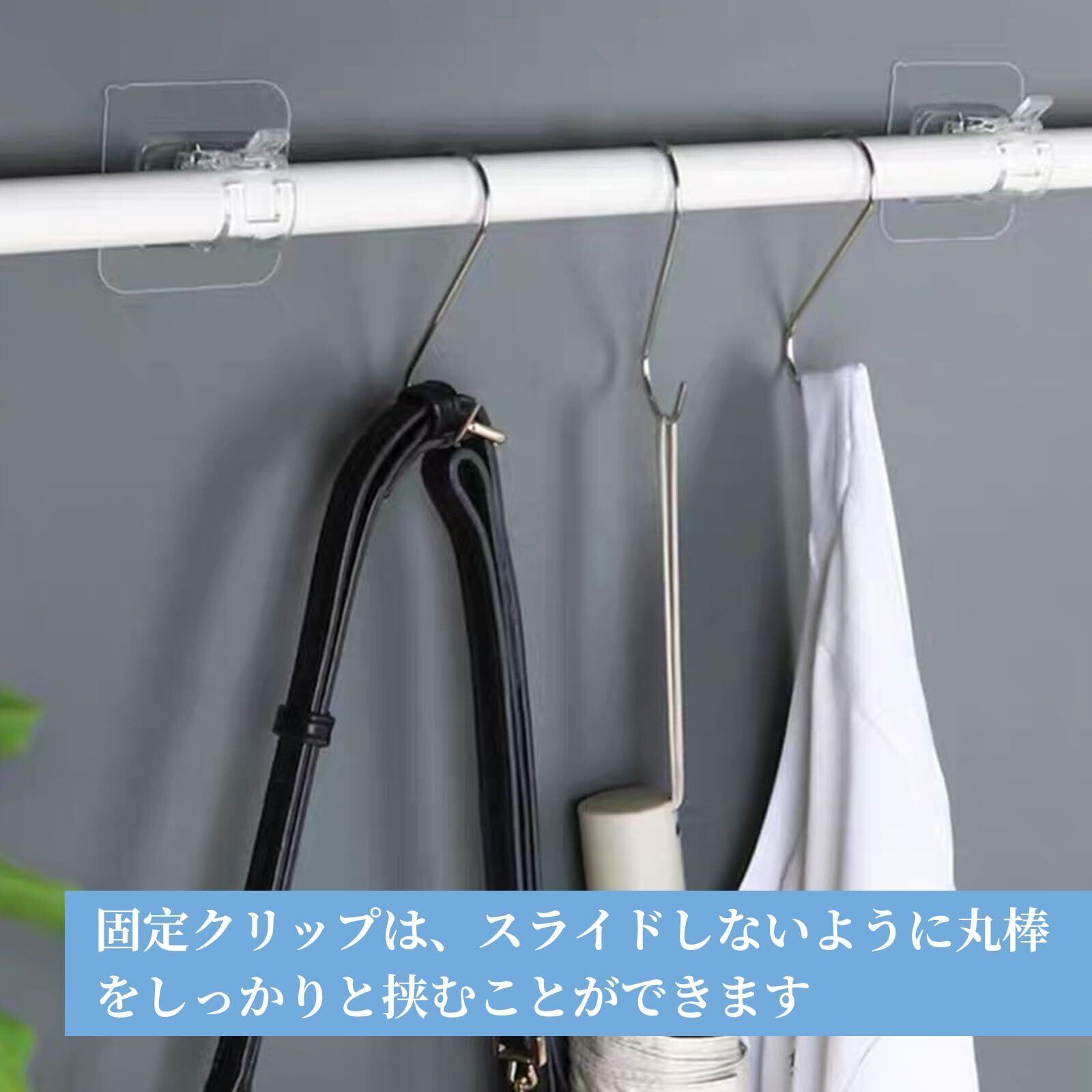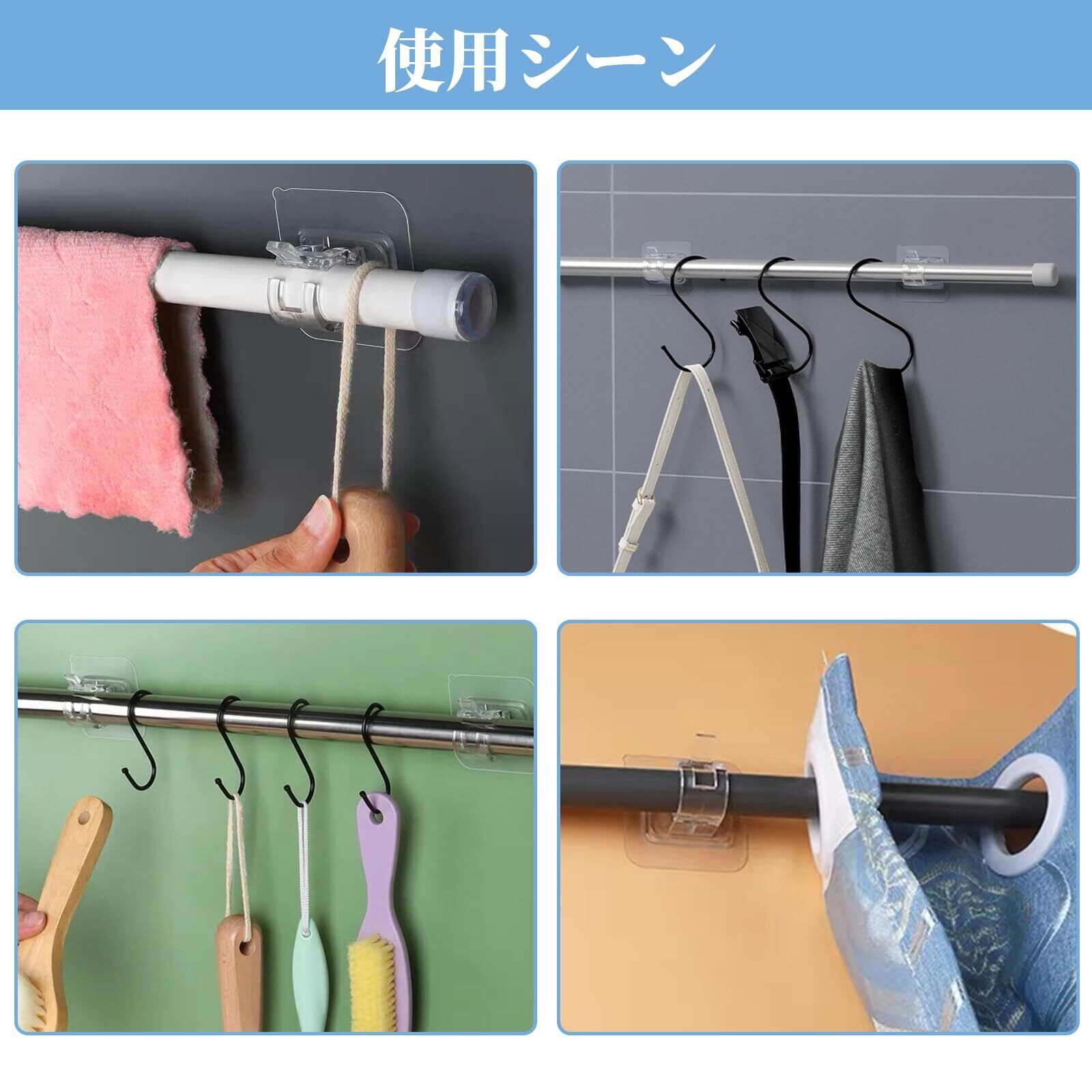 【多機能設計】 カーテンバーに使用されるほか、固定クリップは浴室、キッチン、寝室、リビング、トイレなどのシーンに広く使用されています。例えば、タオル掛け、物干し竿、フックとして使用することができる。