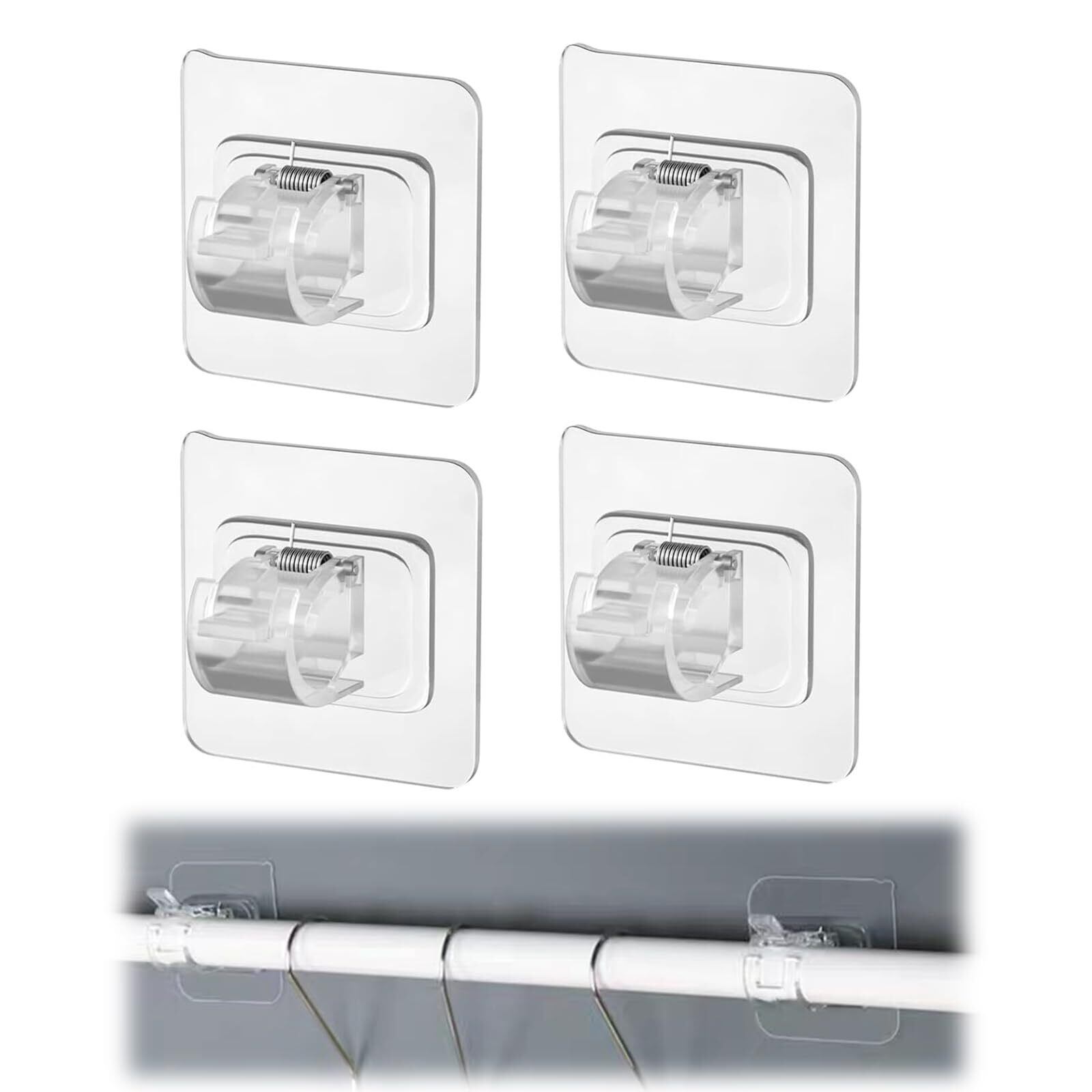 【新春セール】Coollooda 4個セット 丸棒固定クリップ ABS材質 突っ張り棒用フック クリップ式 丸棒ホルダー つっぱり棒 フック 物干し竿受け 自己粘着 穴あけ不要 カーテンロッドブラケット キッチン バスルーム 寝室 リビング トイレ 透明色 | allstore5