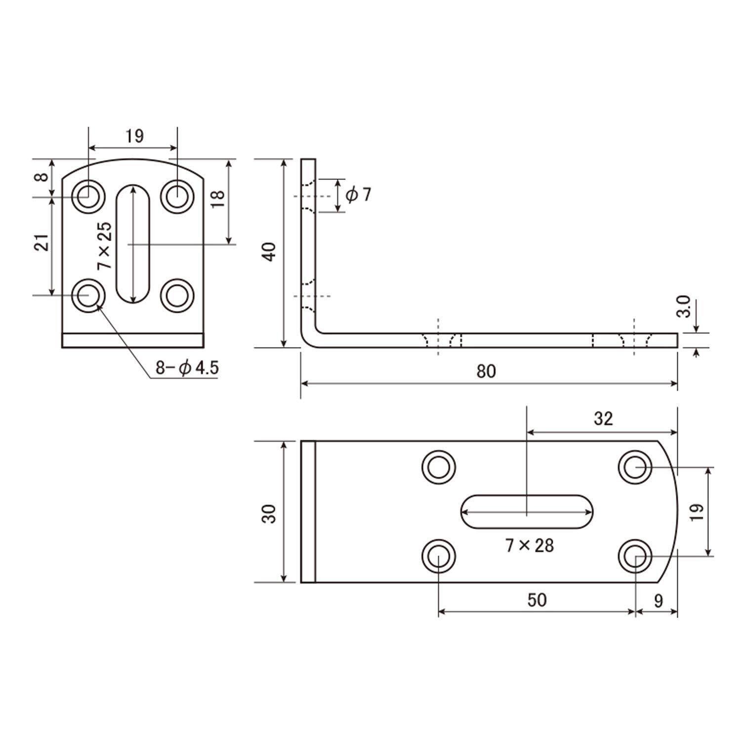 New Hikari (ニューヒカリ) ステンレスワイドアングル 長穴付 不等辺タイプ 40×80