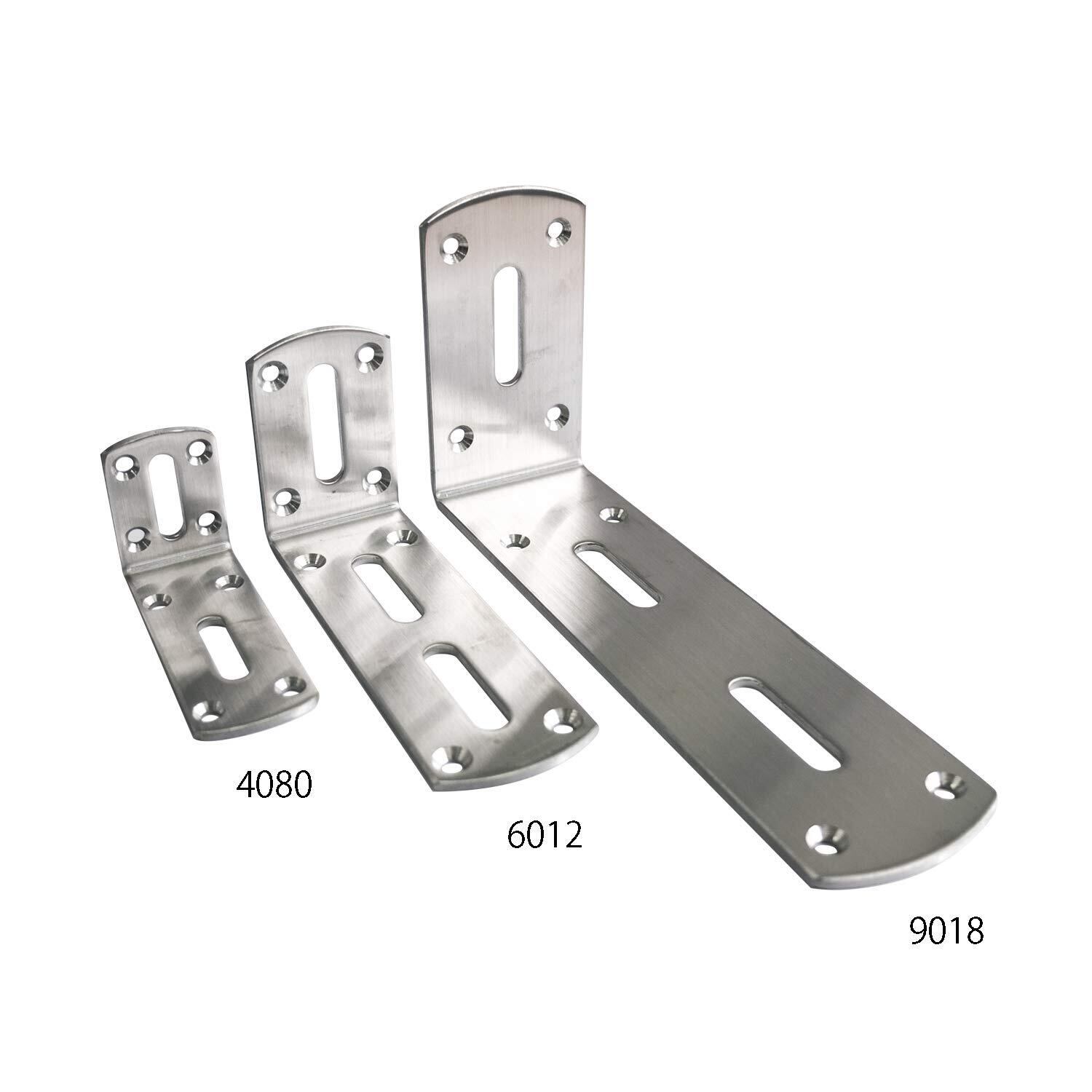 ステンレス製のワイドアングルです。長穴付きなのでボルト固定や仮留め・微調整が可能です。ヘアライン表面仕上げが良好で、美しい研磨がされた国産材料を使用しています。木材の補強やカーテンボックス受金具などにも。