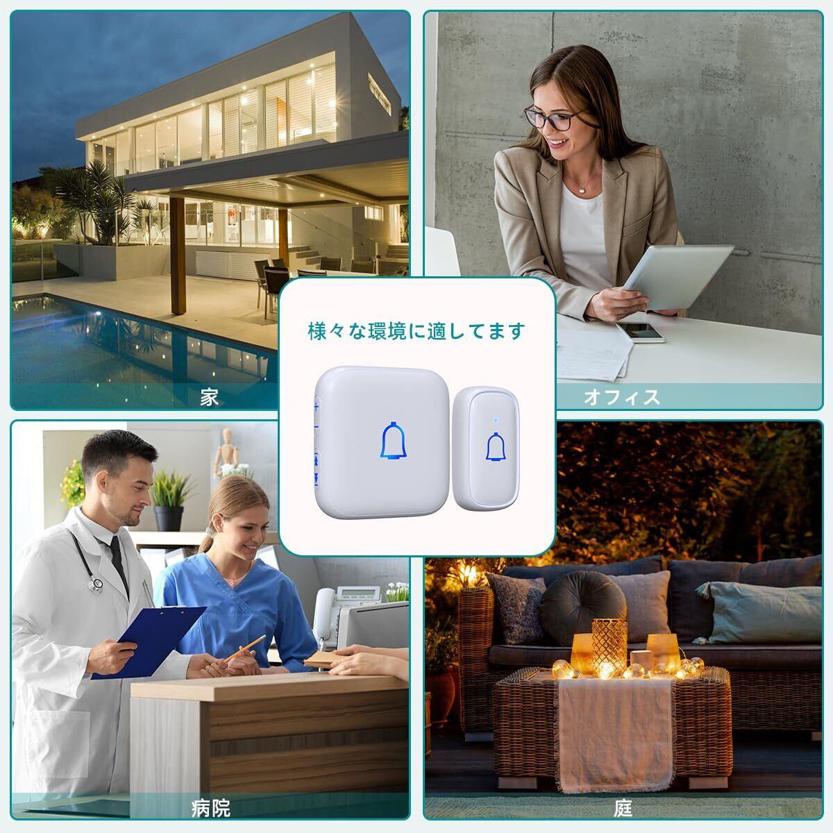 【マルチユース&メモリー機能】教室、家、アパート、別荘、ホテル、病院など多様な環境で使えるワイヤレスチャイム。オフィスのドアベルや学校教室の先生が使用するベルなど多用途ワイヤレスチャイムです。そしてメモリー機能も搭載され、停電後に前回設定したチャイム音、音量レベルが記憶されますので設定をリセットする必要がありません。