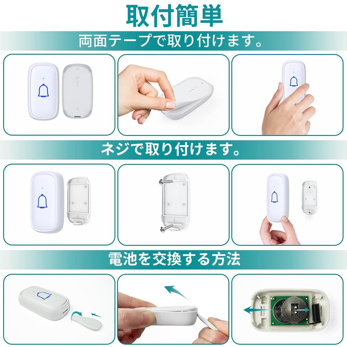 【300m超長距離無線範囲】このワイヤレスチャイムの無線範囲はオープンエリアで最大300mで、超リモートコントロール、浸透力と安定な信号を備えています。強力な干渉防止機能も備え、自宅や近所の他のドアベルからの干渉を防ぐことができます。教室、家庭、オフィス、アパートに適しています。注意:作動距離は周囲環境の障害物によって異なります。 送信機を金属の近くに置かないでください。