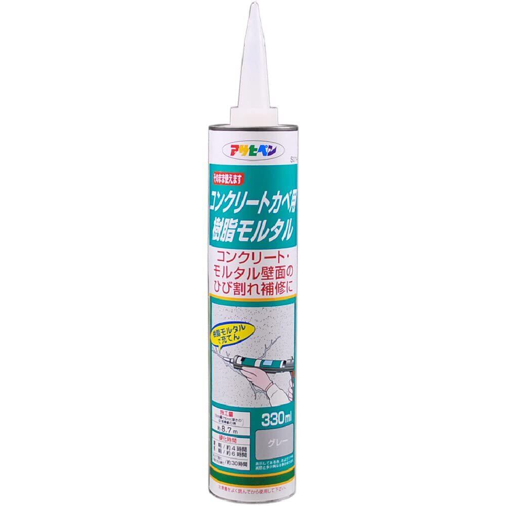 アサヒペン 充填材 コンクリートカベ用 樹脂モルタル 330ml S014グレー モルタル 壁用 ひび割れ 日本製