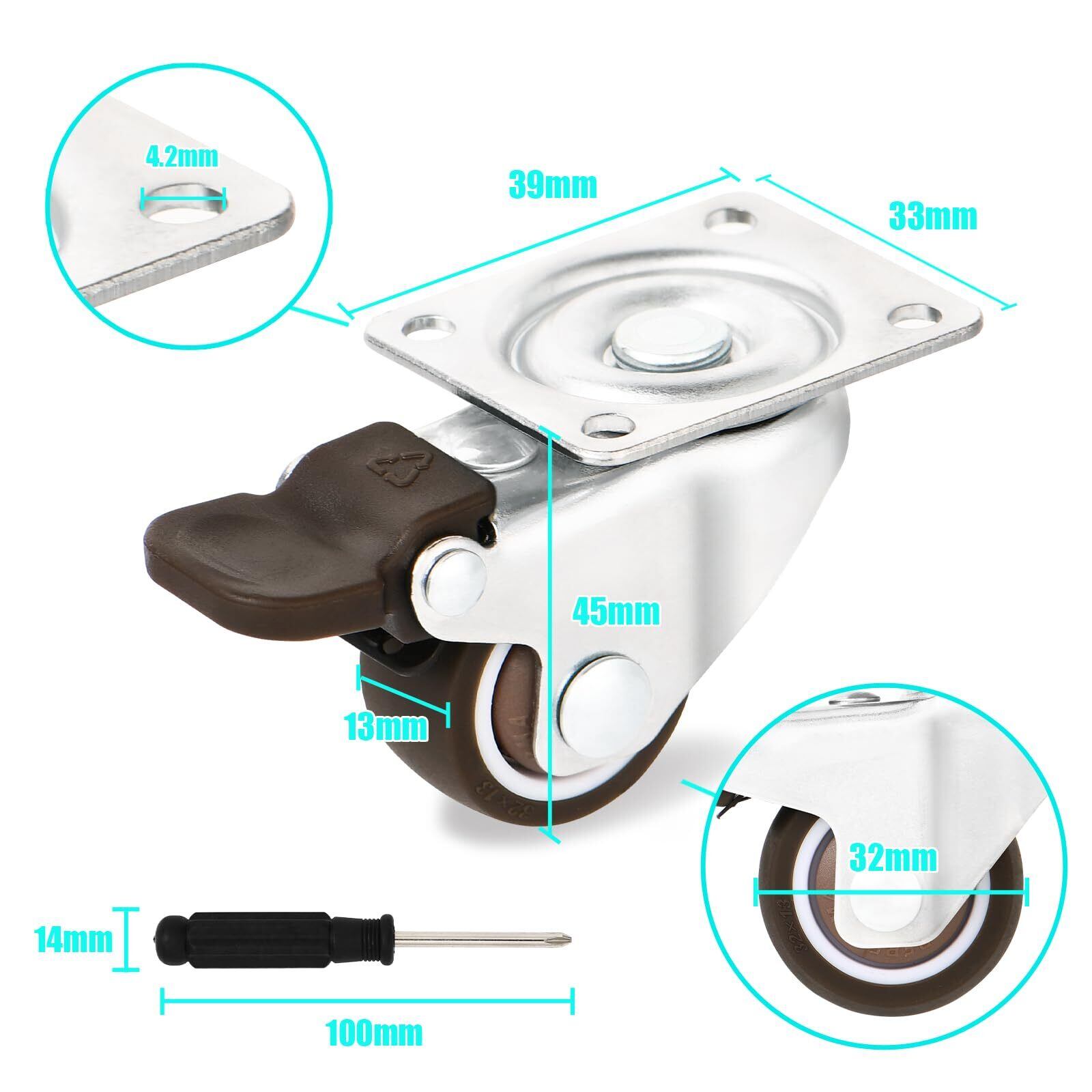 【小さなキャスターでも大きなヘルパー】日常生活で機器や家具を移動することに悩まされていませんか? 吉祥の家 32mm プレート キャスター セットには、ブレーキ付きの回転安全キャスターが2個ブレーキキャスター、2個ノンブレーキキャスター。キャスターを低摩擦抵抗にし、動きやすくします. わずかな強度で、任意の方向を簡単に変えることができます.家具、ホームキャビネット、オフィスキャビネット、棚、ディスプレイラックに最適です。