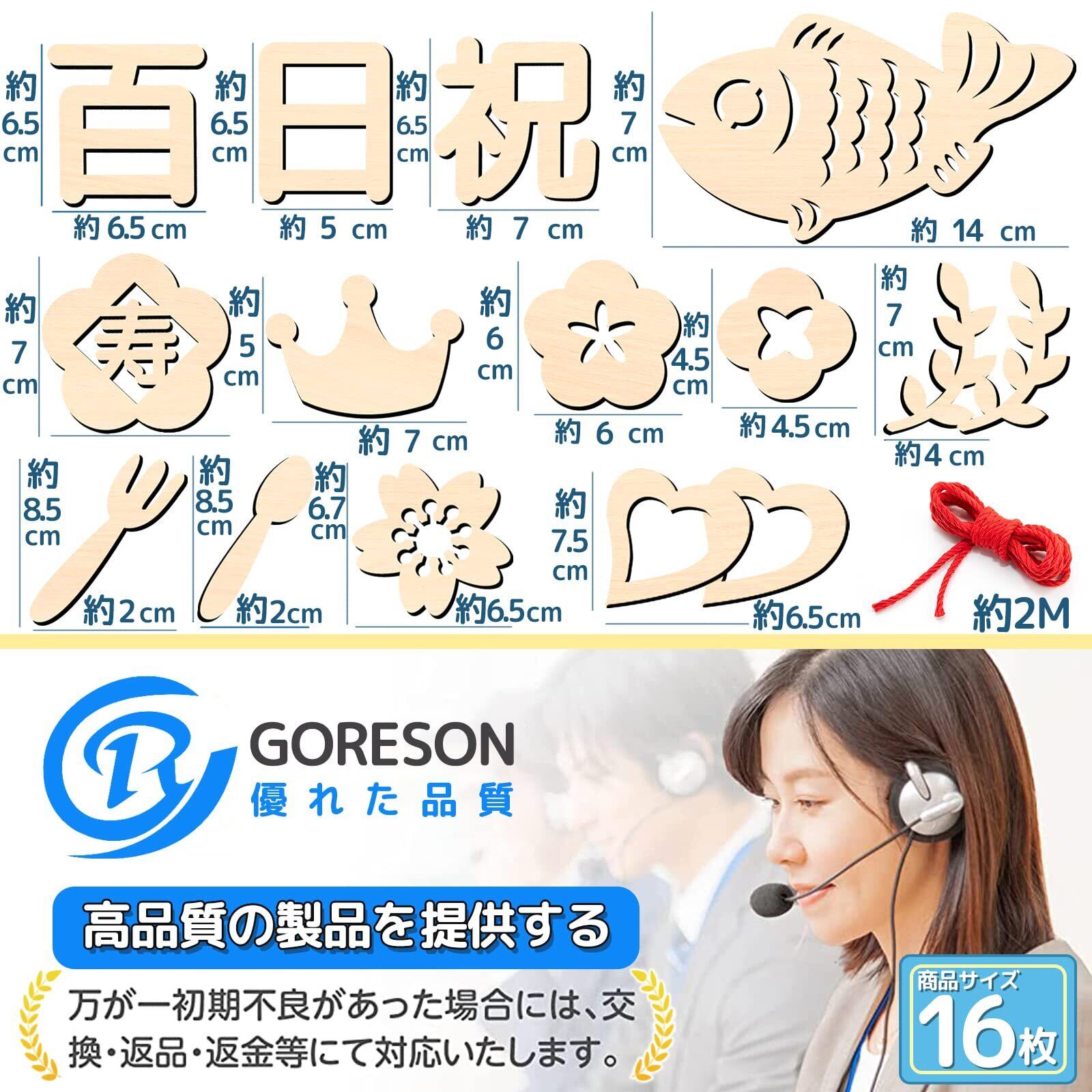 Goreson 百日祝い レターバナー 木製 16種 飾り 100日祝い 誕生日 お食い初め 月齢フォト 月齢 ガーランドお誕生日 飾り 写真 アート ベビー 撮影