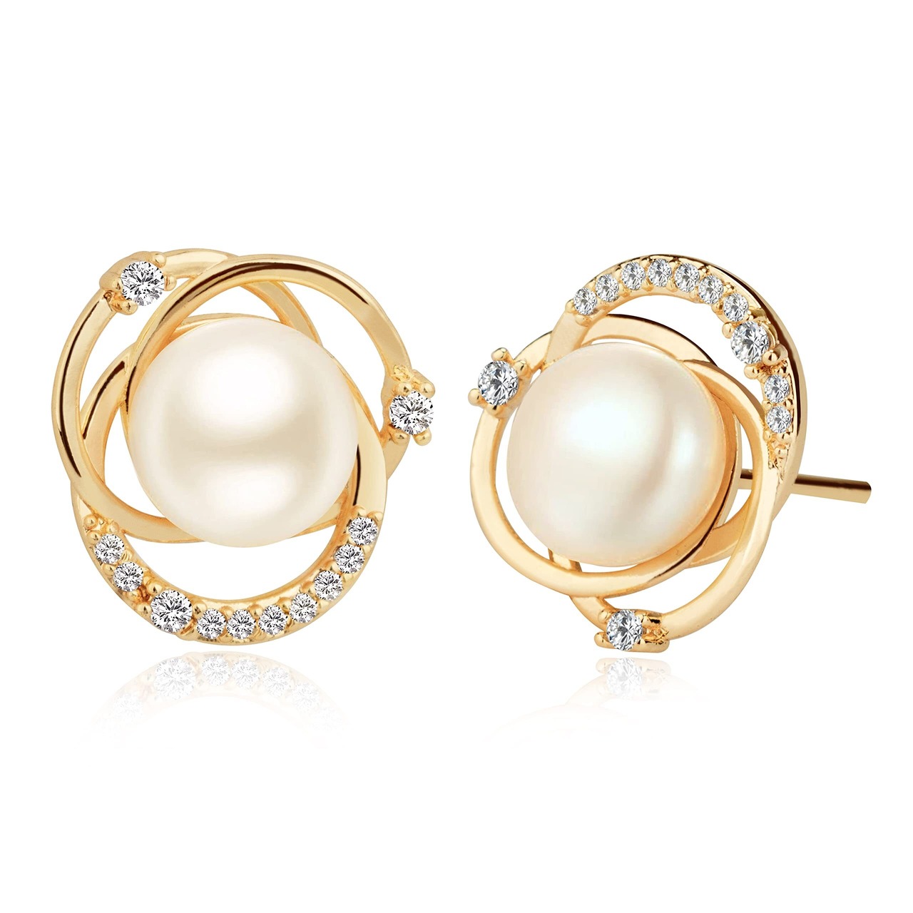 【K18金リボン型の花びら ジルコニア 天然のシェルビーズ】ジルコンがちりばめられた3つのゴールドのリボン型の花びらは、天然のシェルビーズのデザインを引き立たせ、シンプルで高貴な気質を醸し出しています。2つの真珠をこすることで、本物の天然シェルビーズを確認できます。