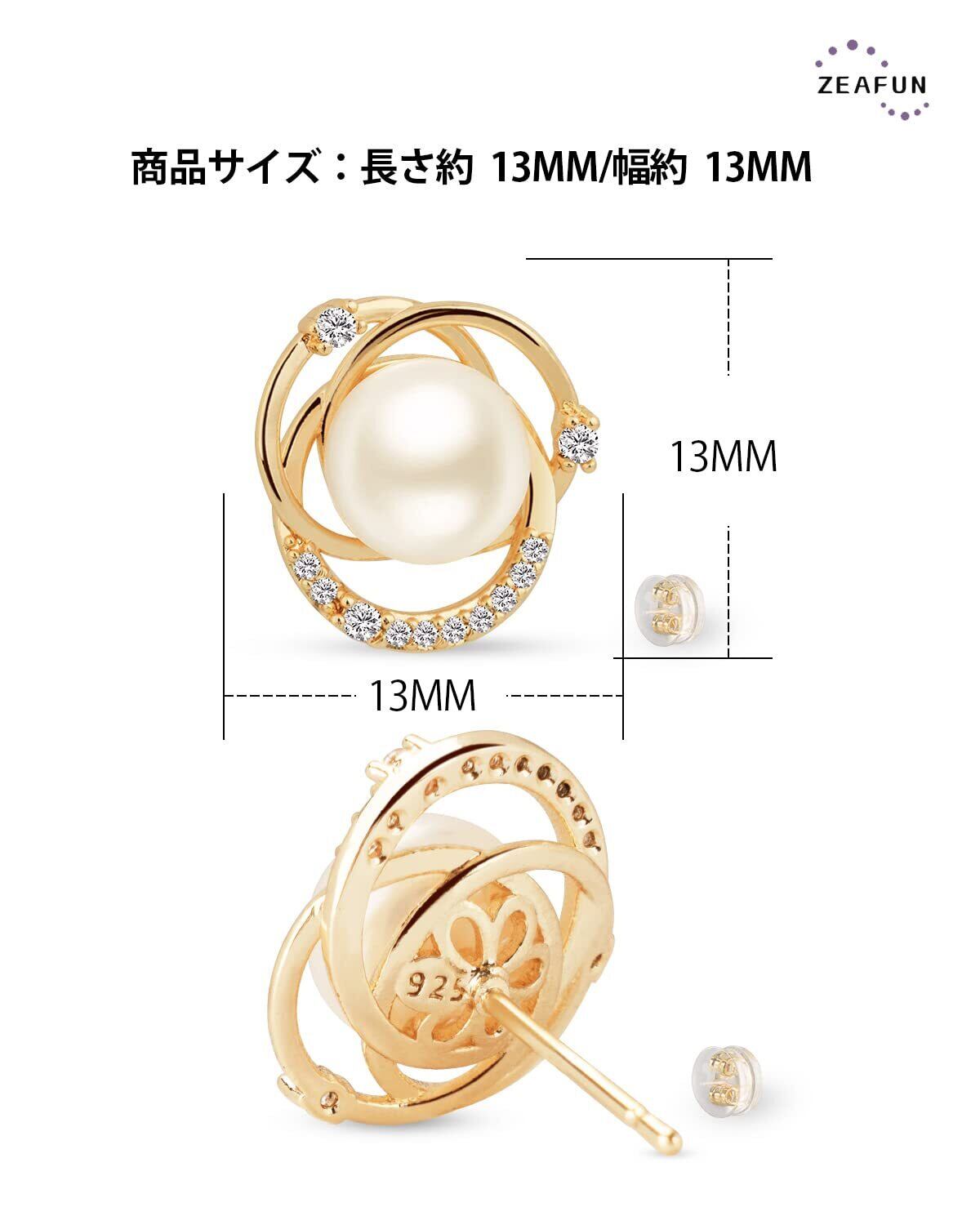 ピアス 18金 パール ピアス Zeafun ピアス レディース 人気 金属アレルギー対応 レディース キャッチ 落ちない プレゼント 女性 人気 ピアス シンプル セカンドピアス