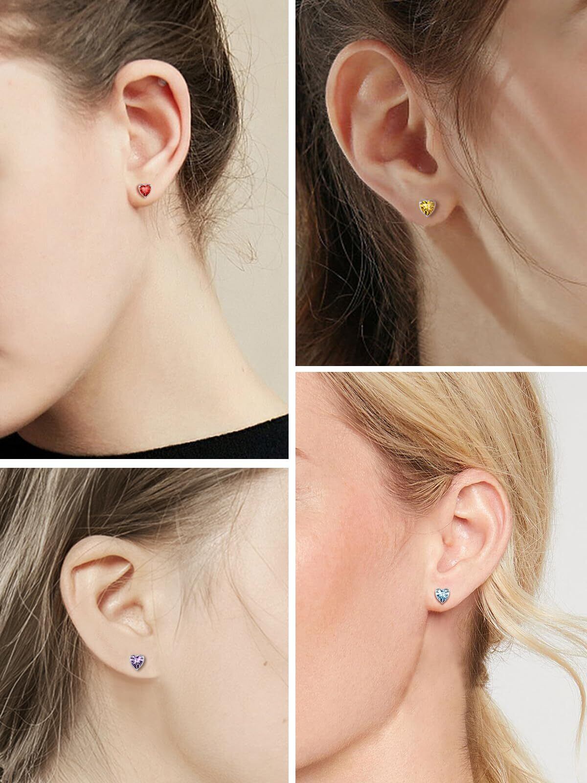 [Suplight] ハート ピアス レディース 人気 シルバー925 ジルコニア 誕生石 かわいい アクセサリー