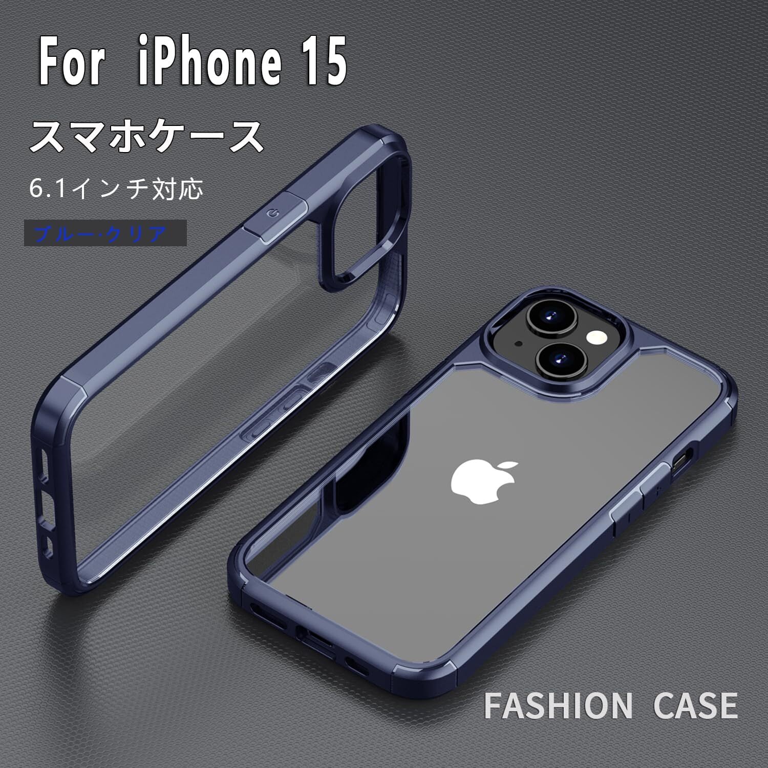 Eazaki iPhone 15 用 ケース 透明 バンパーの全面保護 耐衝撃 黄変防止 指紋防止 滑り止め スレ傷防止 耐久性 カバー アイフォン15 6.1インチ用 スマホケース 携帯ケース(クリア·ブルー)