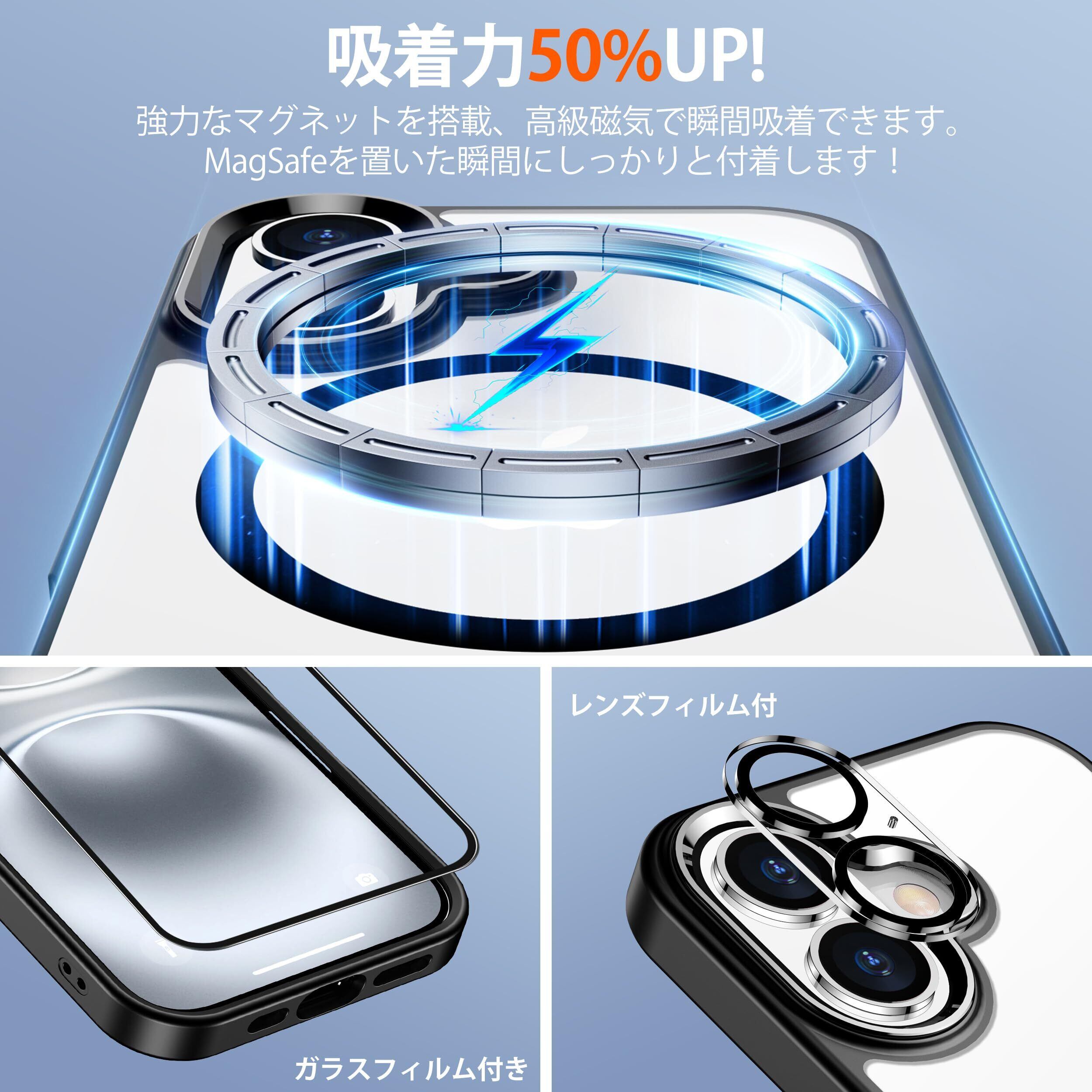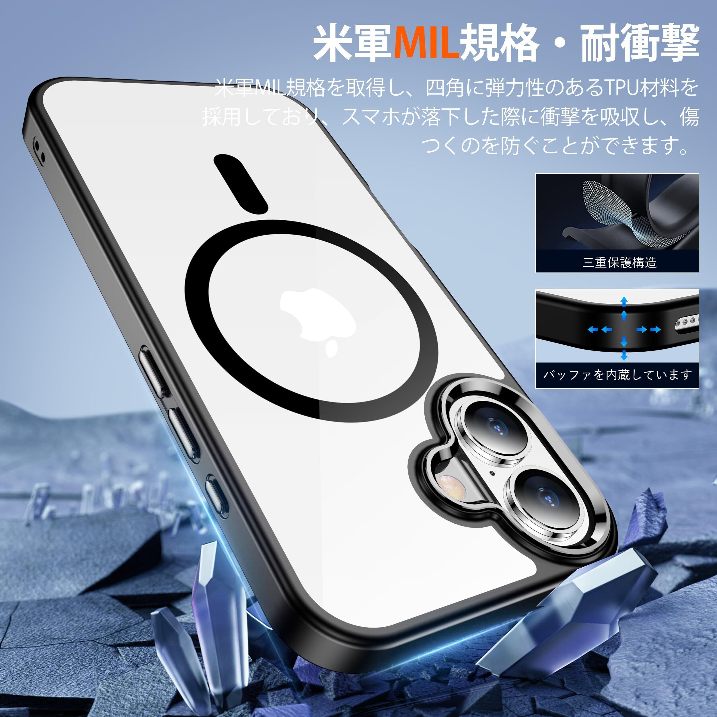 iPhone 16 ケース 磁気充電可 滑り止め 指紋防止 米軍MIL規格 ワイヤレス充電器対応可能 耐衝撃 磁力強化 アイフォン16 ケース アイホン16カバー 耐久性 SGS認証 あいふぉん16 カバー 6.1インチ ブラック JUSTCOOL