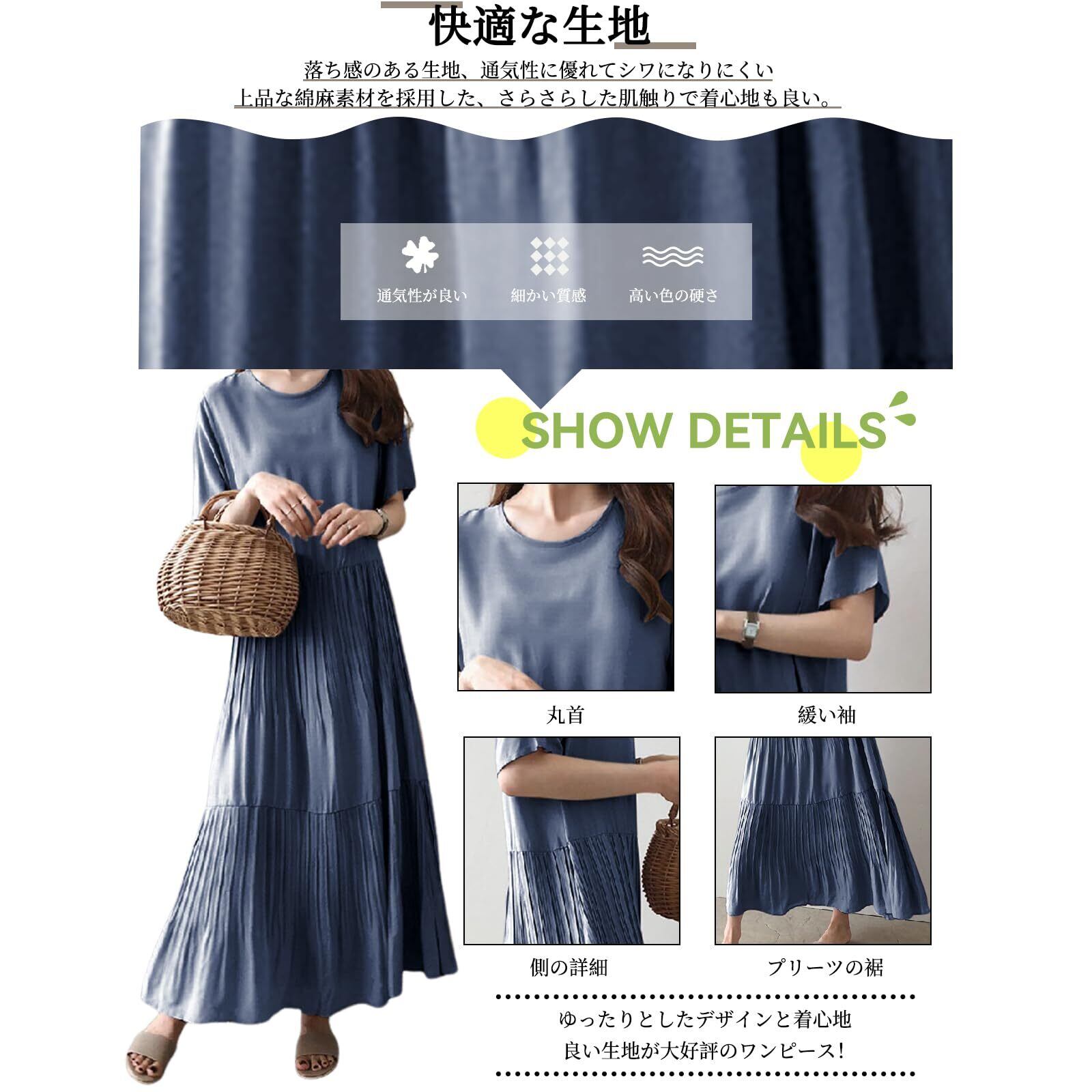 [FEISEDY] ワンピース レディース 大きいサイズ ゆったり 知的 丸首半袖 無地 着瘦せ ロング ワンピース おしゃれ カジュアル エレガント シフォン ドレス 夏 A8107