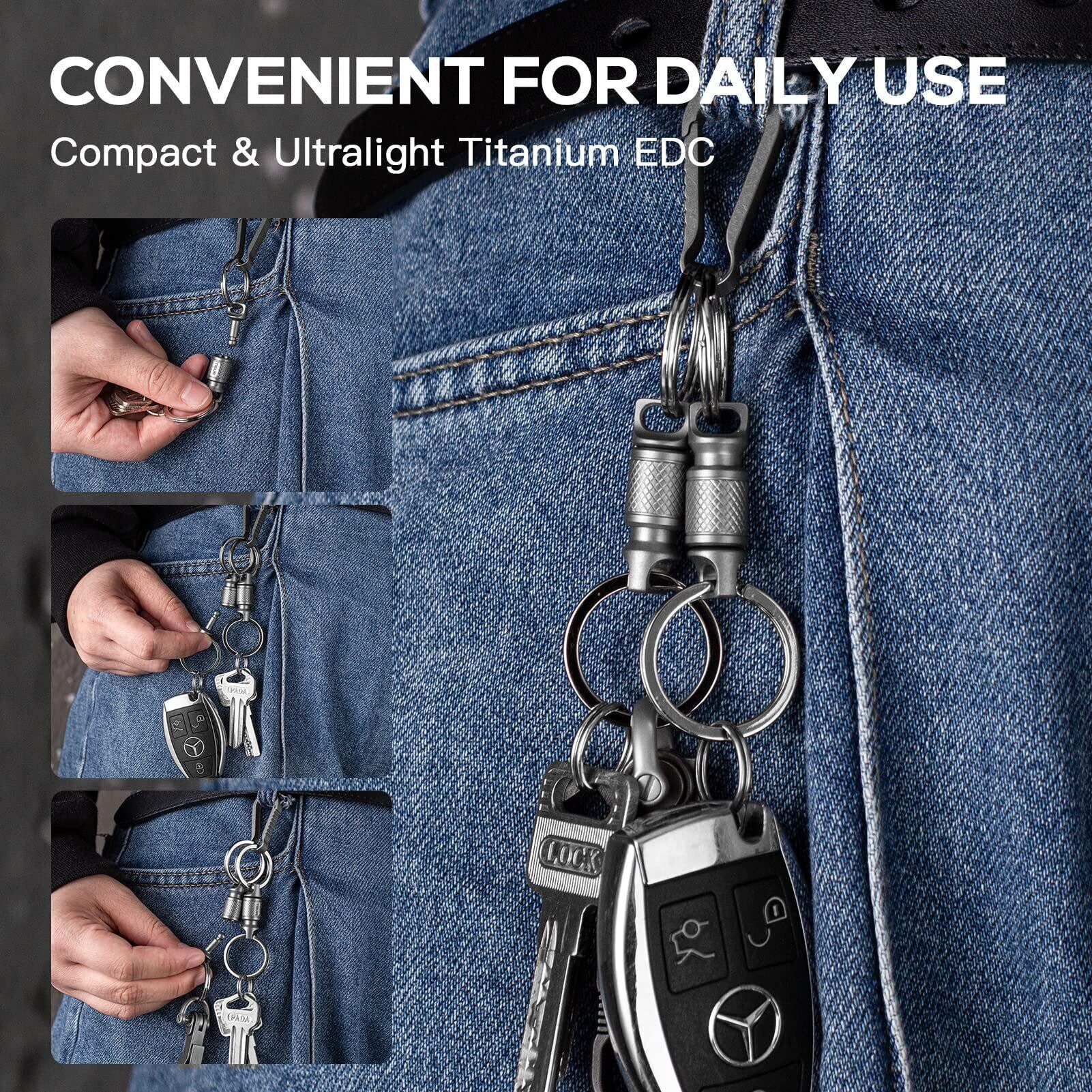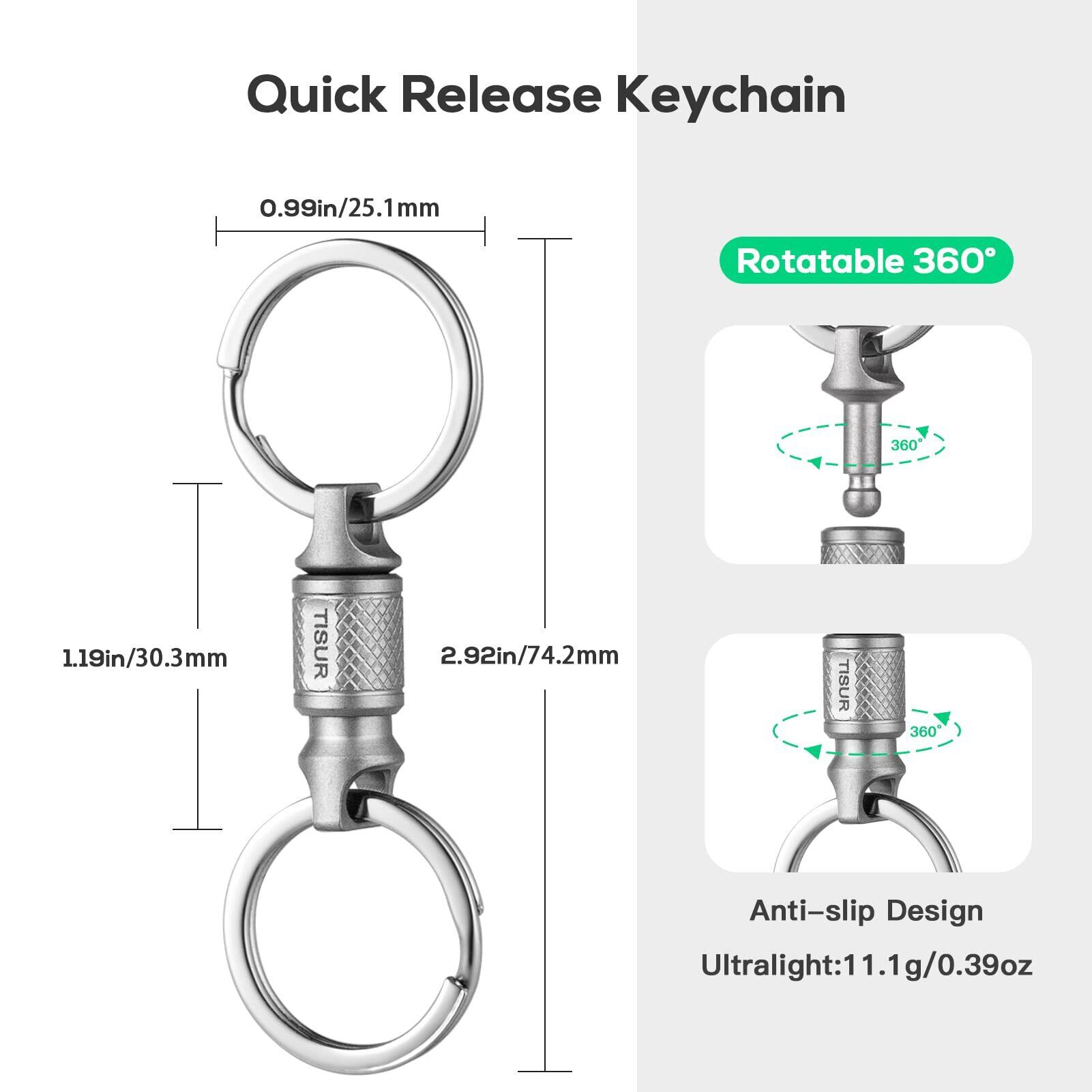 [TISUR] チタン キーホルダー 分離型 クイックリリース カラビナ キーリング付き