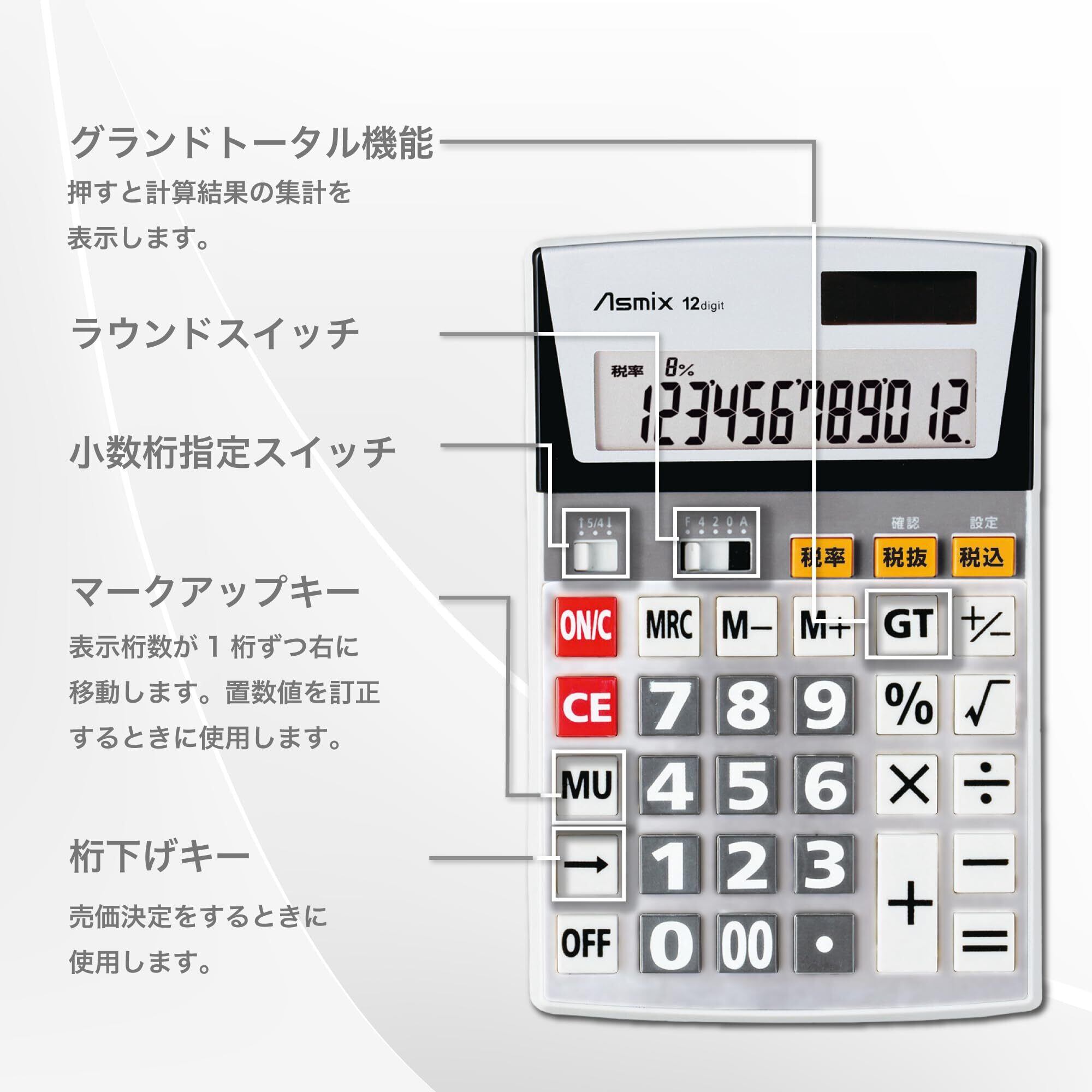 12桁/税計算機能/税設定/早打ち対応/オートパワーオフ
