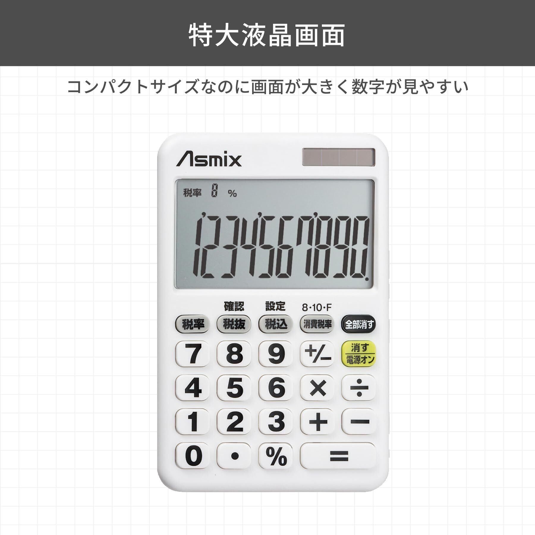 アスミックス(Asmix) アスカ 電卓 消費税率切替ボタンつき デカ文字 C1018W ホワイト