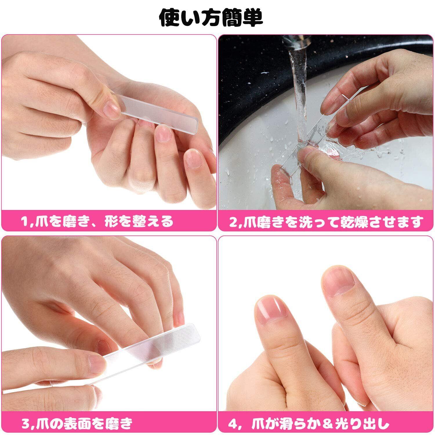 【ナノ精度の加工技術】爪やすりには、繊細で細かい特殊加工を施しているため、紙や金属製に比べ、傷つけにくいのになめらかに、ネイルプレートから爪先まで、光沢あるピカピカの爪を実現します。爪やすりの表面はガラス製のため、消耗することなく長く使い続けられます。手の爪、足の爪を磨いたり、さらに爪の先端を削ったりと爪切りの代わりとしてもご利用いただけます!