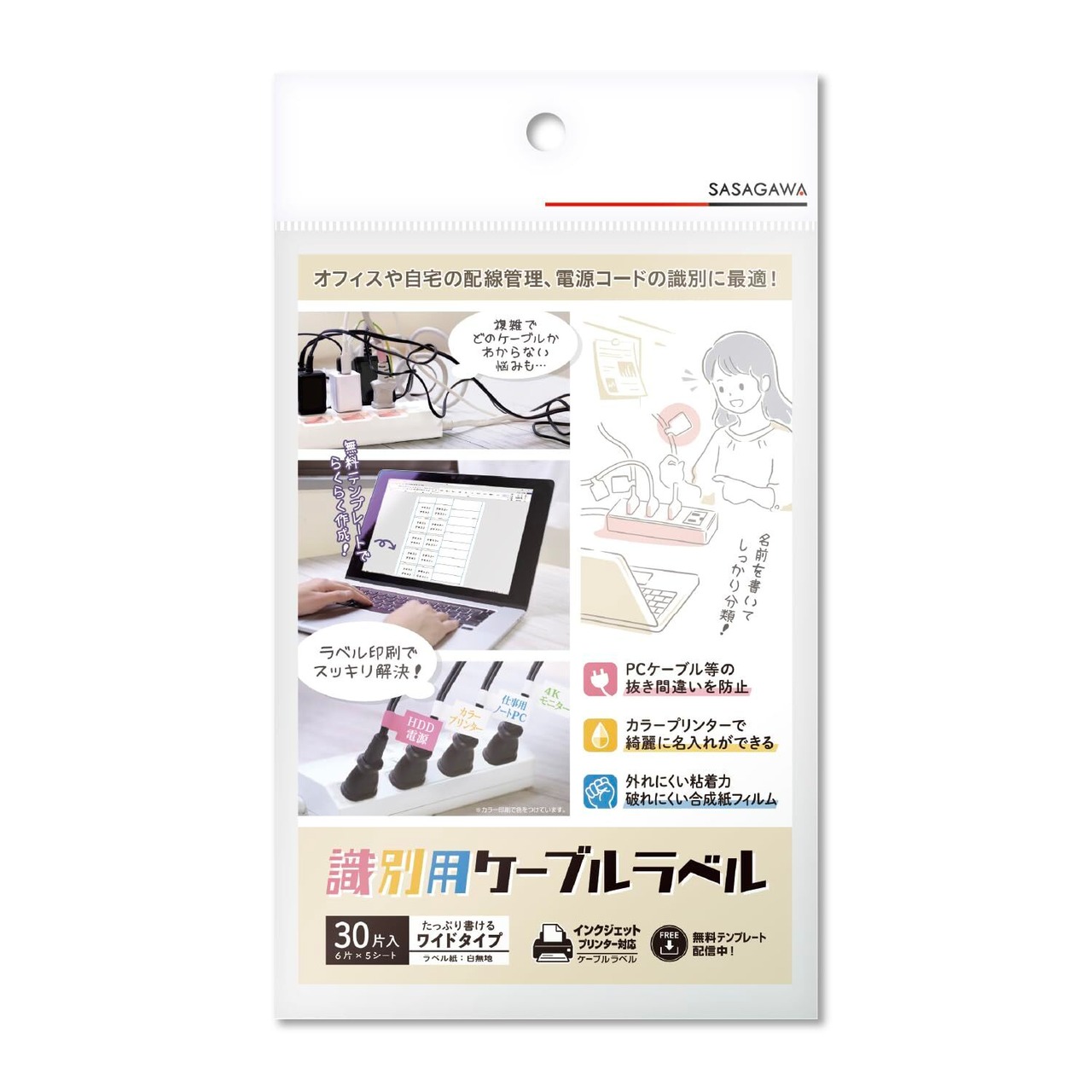 【人気商品】ササガワ ケーブルラベル タカ印 プリンター対応 テンプレート付き ワイドタイプ 30片 24-2001