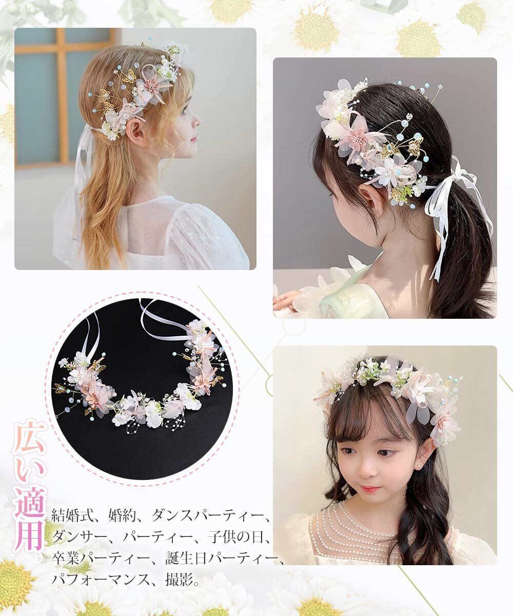サムコス 髪飾り 花 パール 花かんむり リボン ホワイト ヘッドドレス クリスタルビーズ 花冠 ヘアアクセサリー 結婚式 発表会 披露宴 卒業式 パーティー ダンス 和装 撮影 写真 子供 大人用 (B)