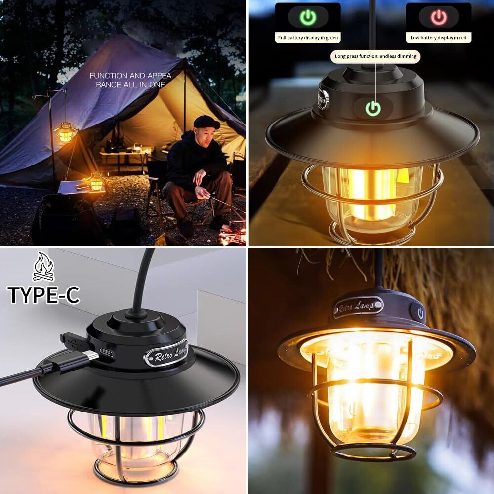 YZYOE 充電可能屋外キャンプライト、ミニポータブルテント非常灯 新しい馬灯の4速モードは白と暖かい光、琥珀色と暖かい白の光。