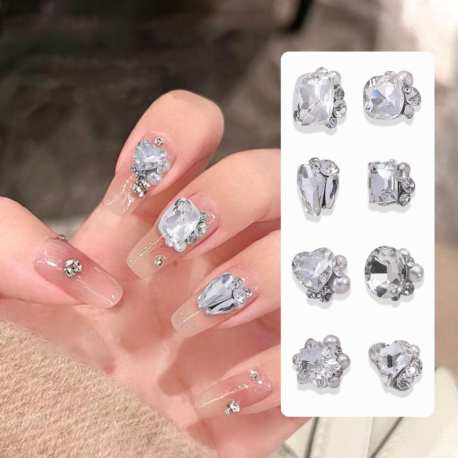 【在庫処分】ネイルパーツ ストーン 24個セット 3D 立体 大きめ ネイル ストーン クリア ラインストーン キラキラ 四角 スクエア 長方形 ハートストーン 宝石 ネイルアート ジュエリーパーツ デコパーツ | allstore5