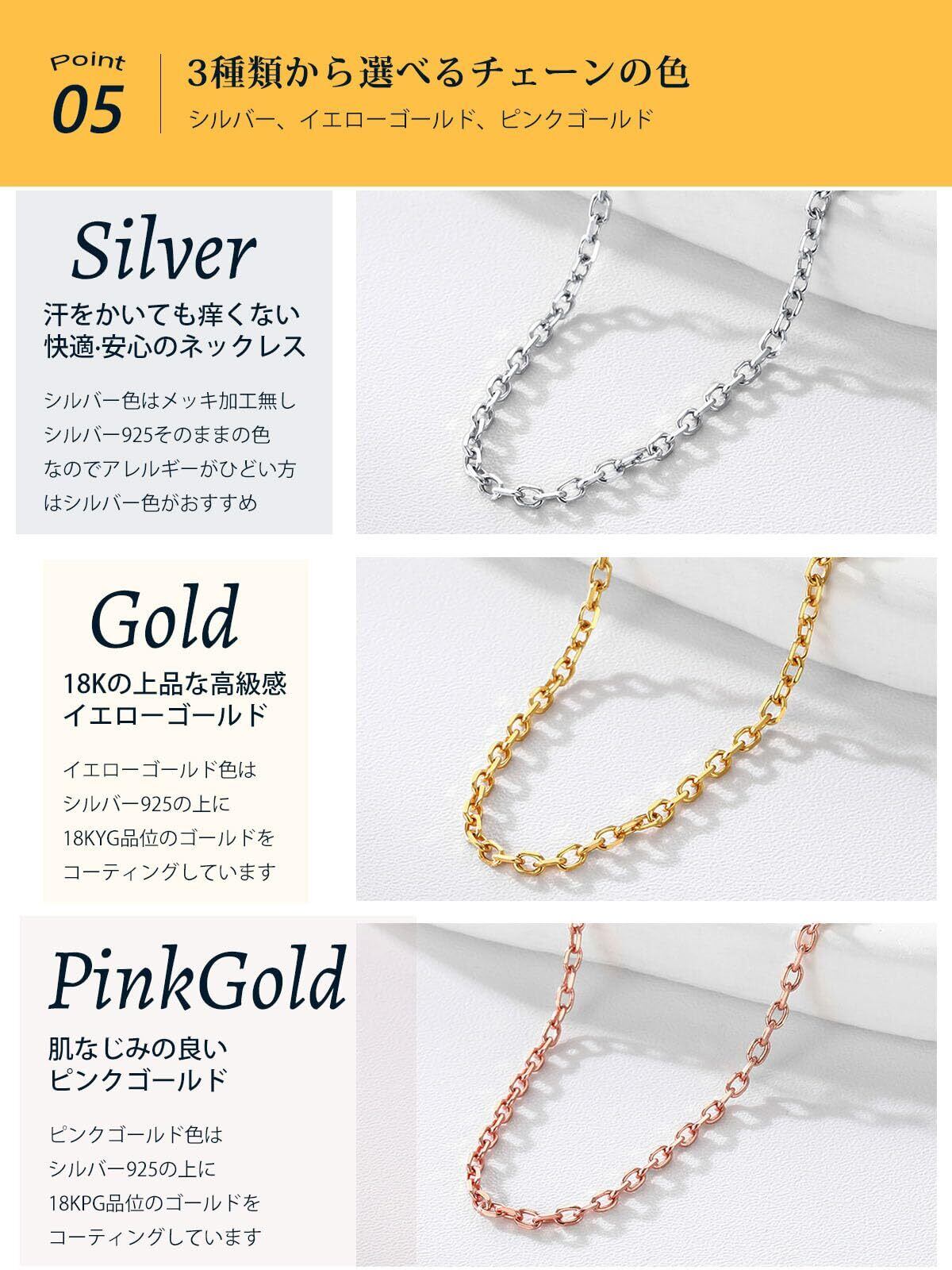 SILVERCUTE ネックレス チェーンのみ シルバー925 レディース 金属アレルギー対応 18金 細め つけっぱなし ペンダント用チェーン ピングゴールド