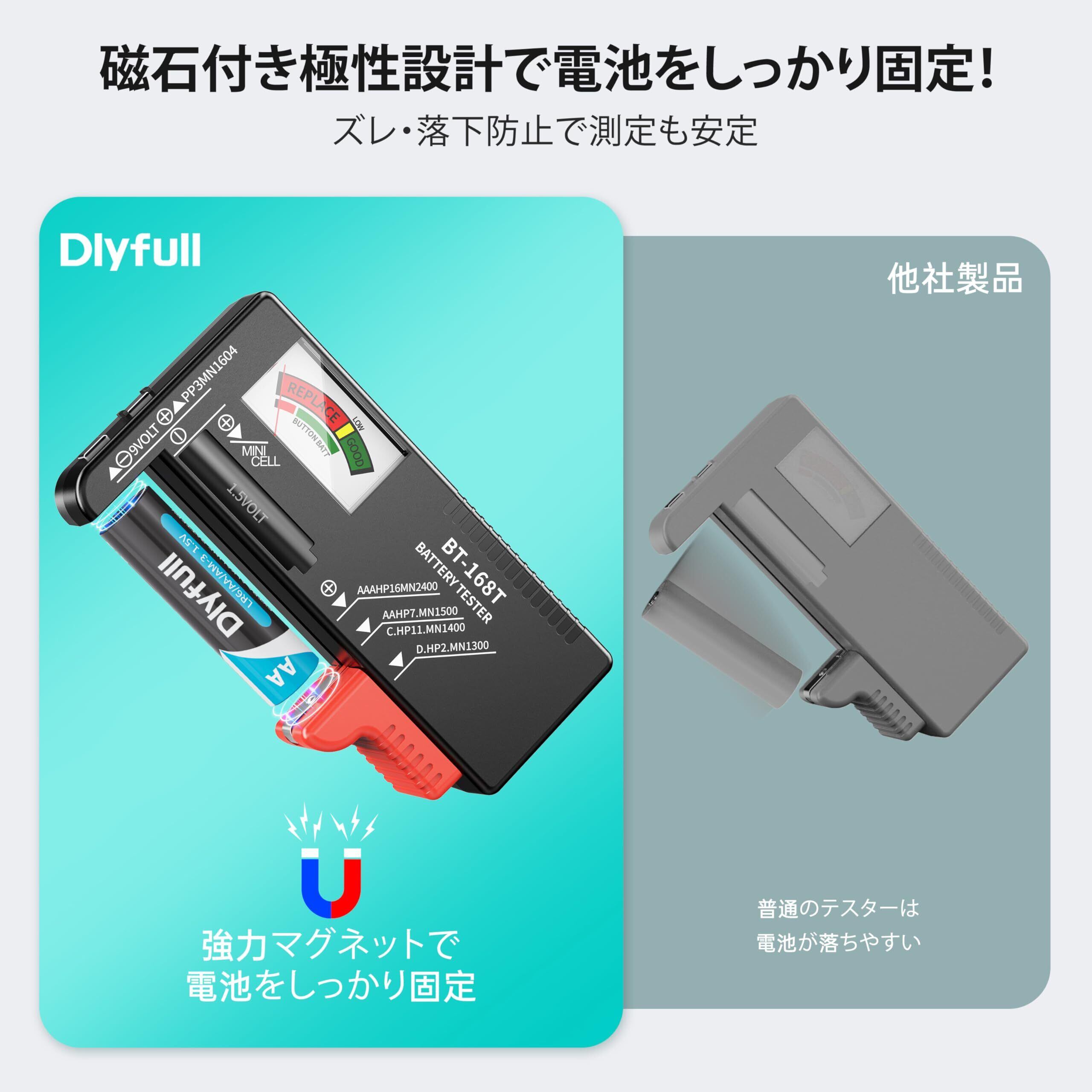 【新着商品】Dlyfull 電池チェッカー 正負極磁石式固定 電池落下防止 電池残量チェッカー AA/AAA/C/D/9V対応 バッテリーチェッカー 電源不要 日本語説明書付き