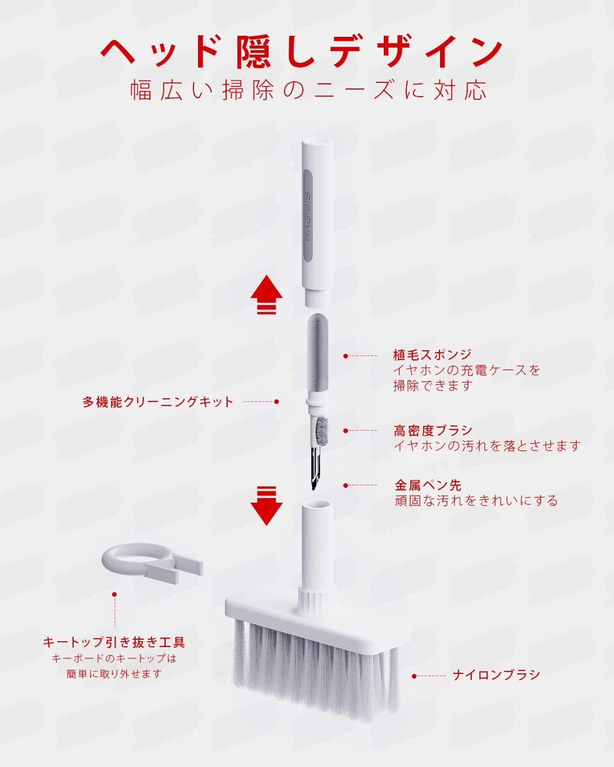 ヘッド隠しデザイン:airpods クリーナーはナイロン毛、植毛スポンジ、高密度ブラシ、金属ペン先とキートップ引抜工具を備え、Hagibis 5-in-1コンピュータークリーニングキット、さまざまなクリーニングニーズを対応します。
