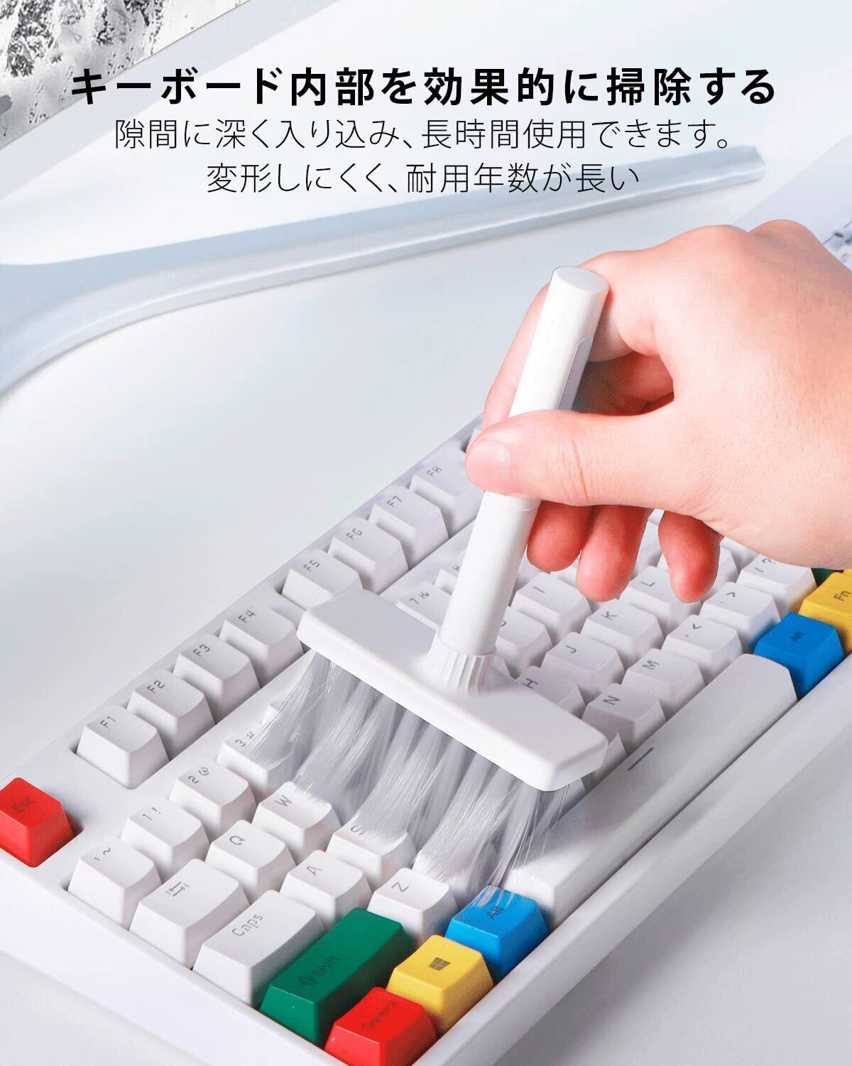 ソフトブラシはキーボードを傷つけません:Keyboard cleanerは適度な柔らかさと硬さのナイロンを採用、優れた弾力性、耐久性があります。3列デザインのナイロンブラシにより清掃面積を大きくで掃除は楽です。