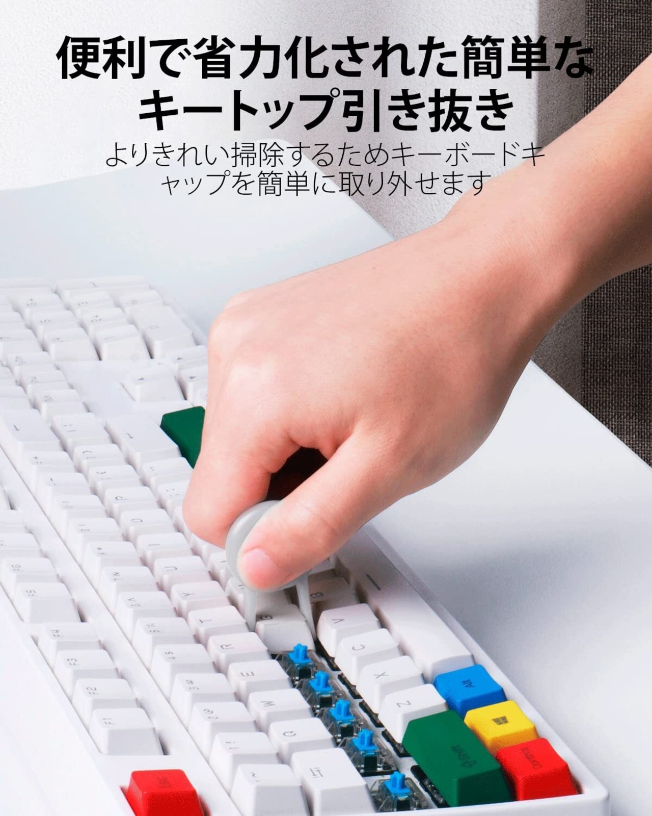 キーを引っ張るのが簡単:シンプルなキートップ引き抜き工具を使用すると、キートップの交換が面倒でなくなり、キートップの取り外しにより徹底的に掃除ができます。