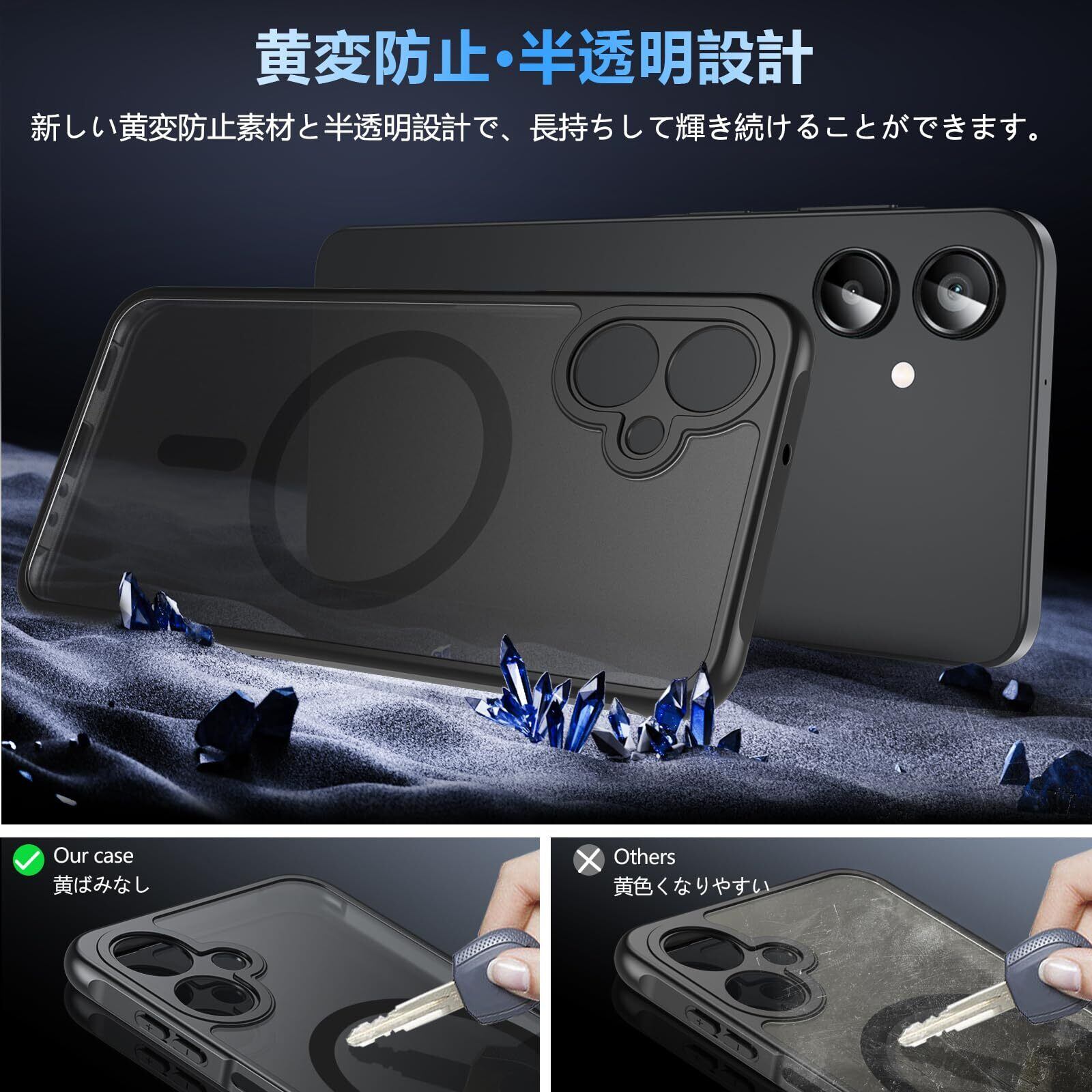 【マグネット搭載・超強磁気吸着】内蔵された強力なマグネットでピッタリと密着し、ワイヤレス充電機能が対応していない以外は(スマホ自体にワイヤレス充電機能はありません)、すべての磁気吸引機能に対応しています。ギャラクシーA25 ケース を外すことなく、MagSafe車載ホルダー、MagSafeリングなど、全てのMagSafeアクセサリーを使用できます。より簡単で、より便利で、日常生活に便利な Galaxy A25 5G ケース です。