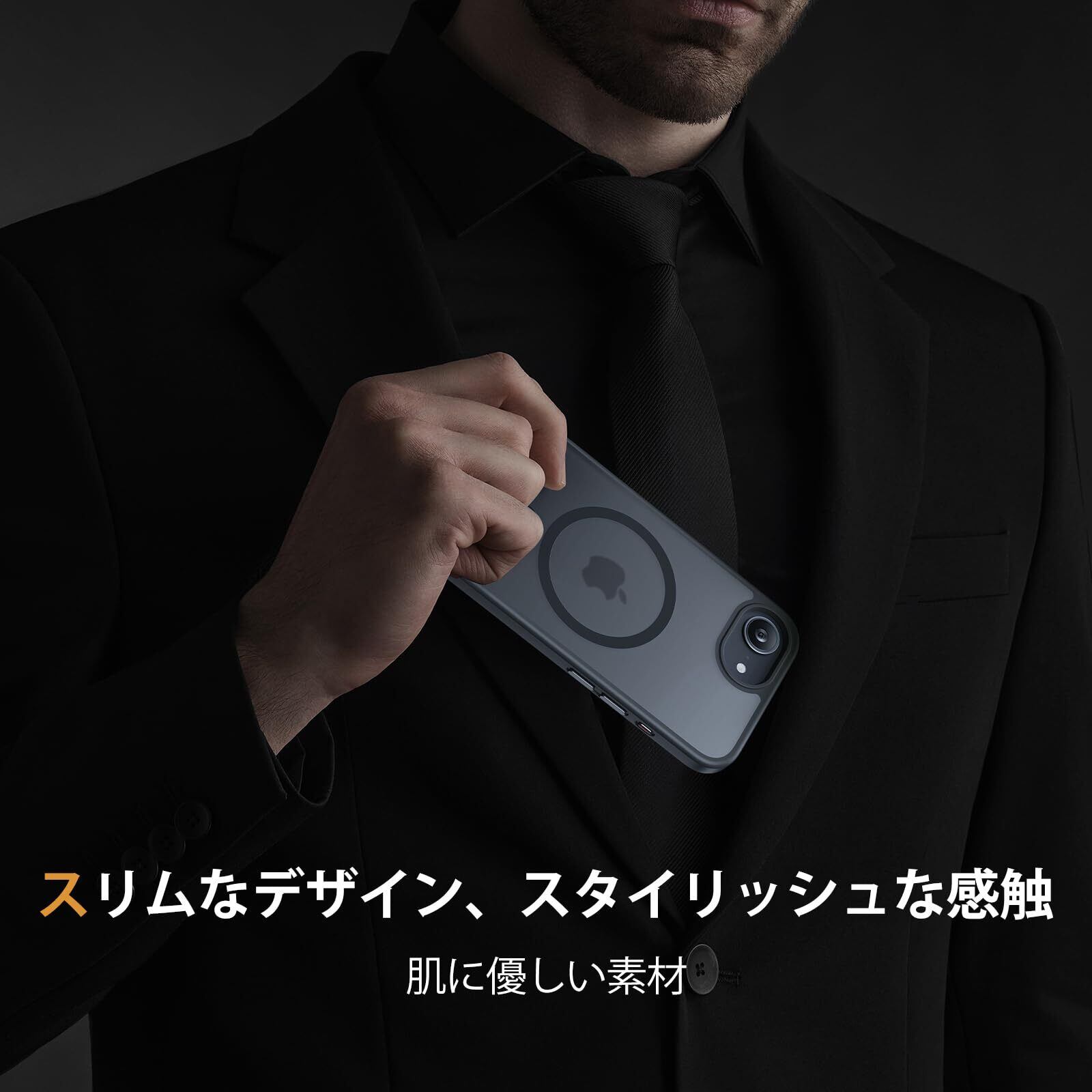 Miracase iphone 16e ケース【Magsafe対応・米軍規格】耐衝撃iphone16e ケース 6.1インチ、Qi充電対応、黄ばみ防止、傷防止、ストラップホール付き、薄くて肌に優しいデザイン、金属ボタン、マット、フロスト、半透明、黒