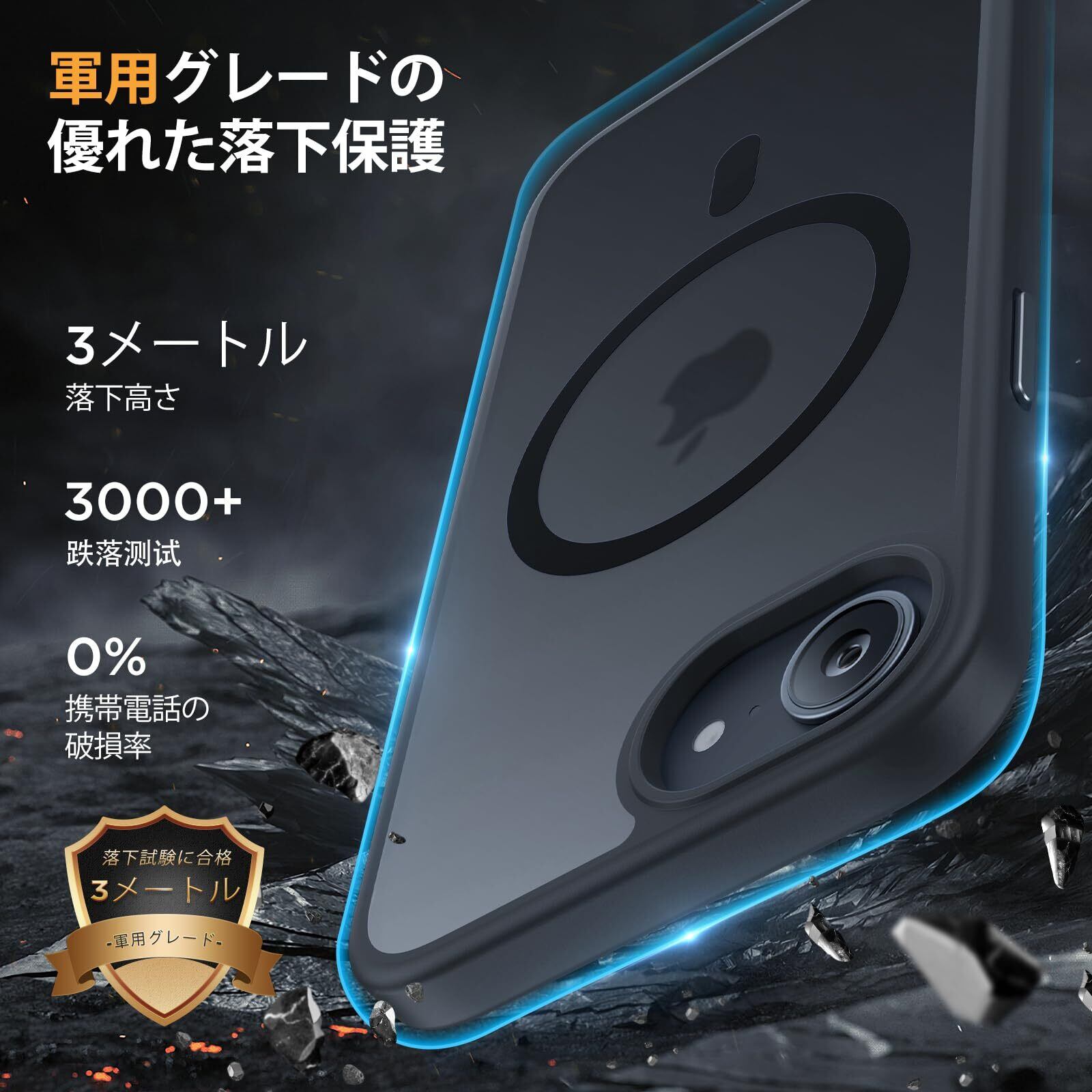 【米軍規格レベルの耐衝撃性】アイフォン16e ケース,360°エアバッグ構造+3層TPUクッションを採用。3メートル高さからの3,000回落下試験をクリア(試験端末破損ゼロ)。日常の落下衝撃からスマートフォンを確実にガード